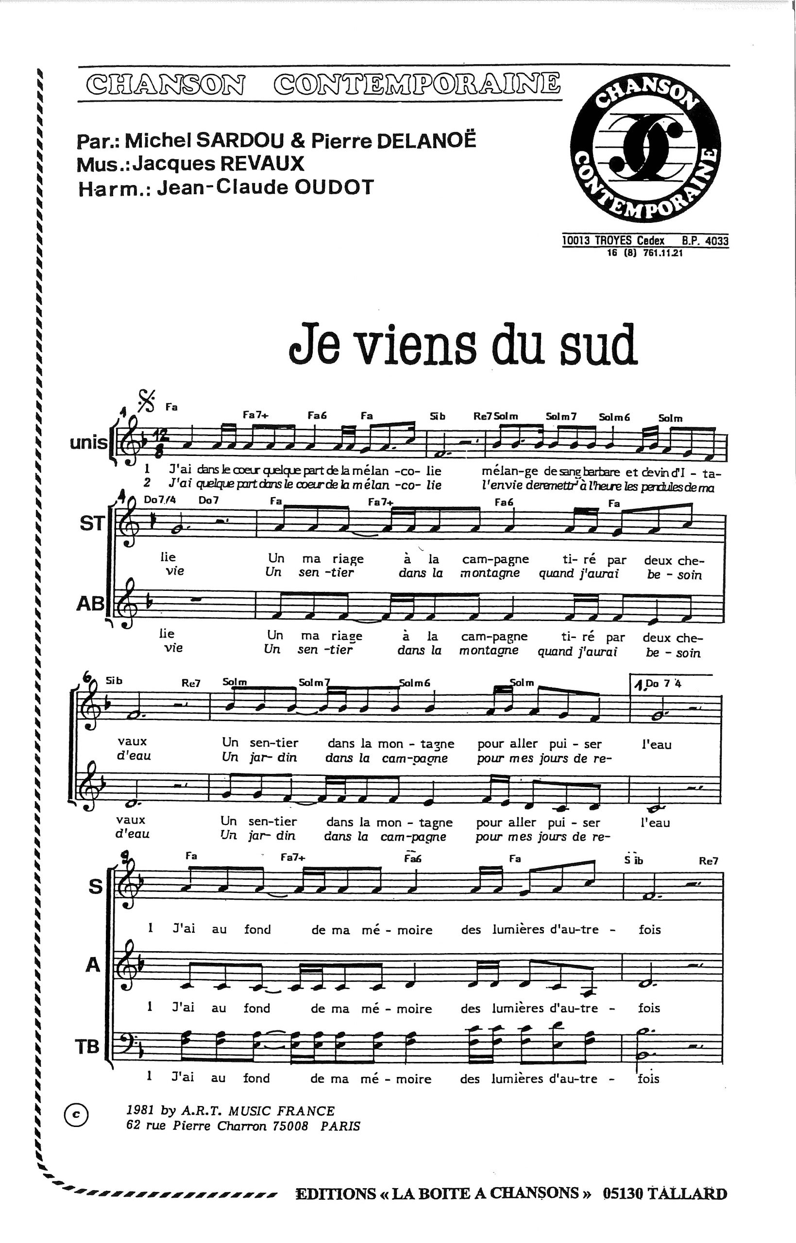 Paroles et musique de SARDOU/DELANOE/REVAUX Harmonisation : Jean Claude OUDOT