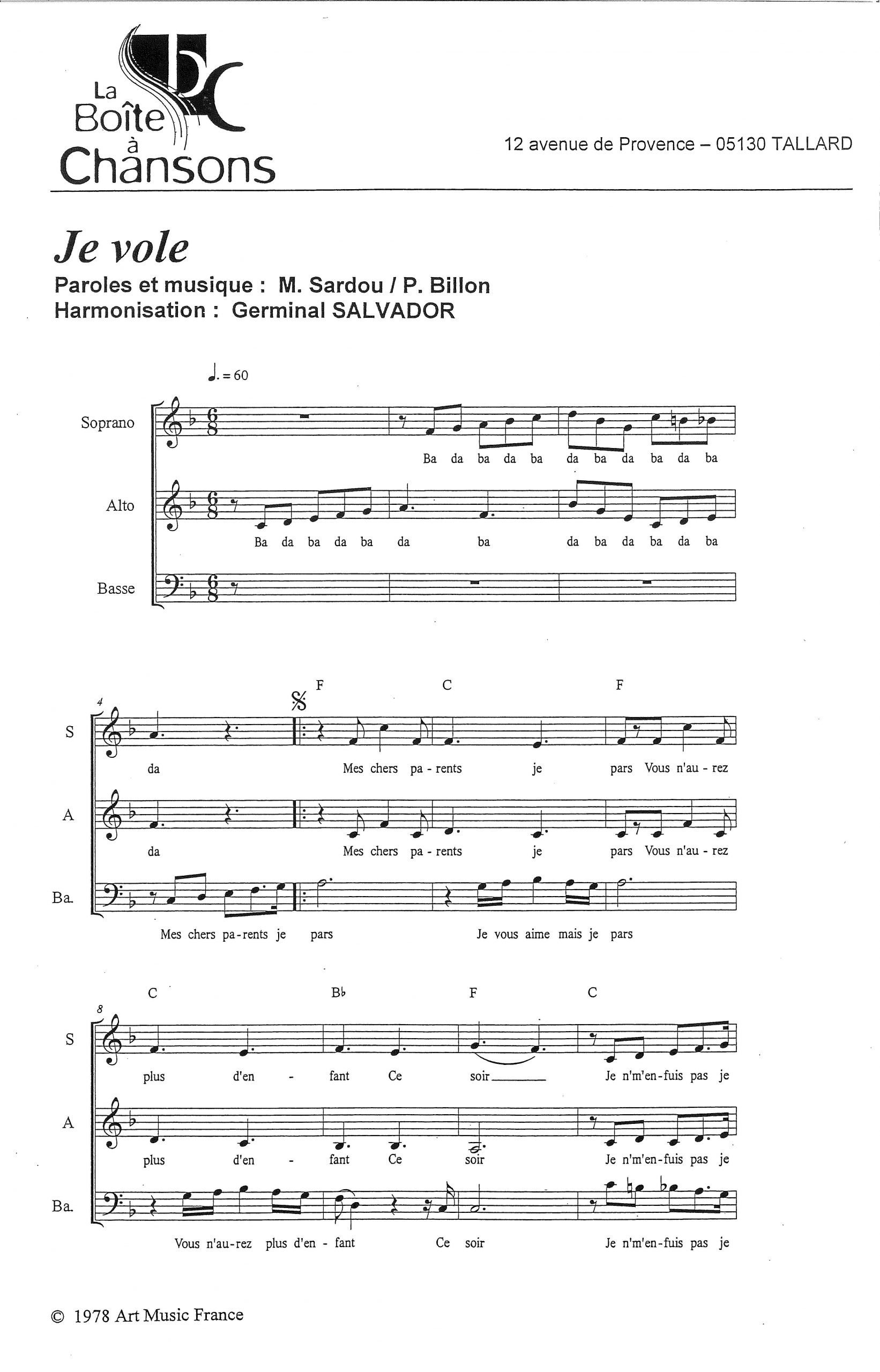 Paroles et musique : Sardou / Billon Harmonisation : Germinal SALVADOR