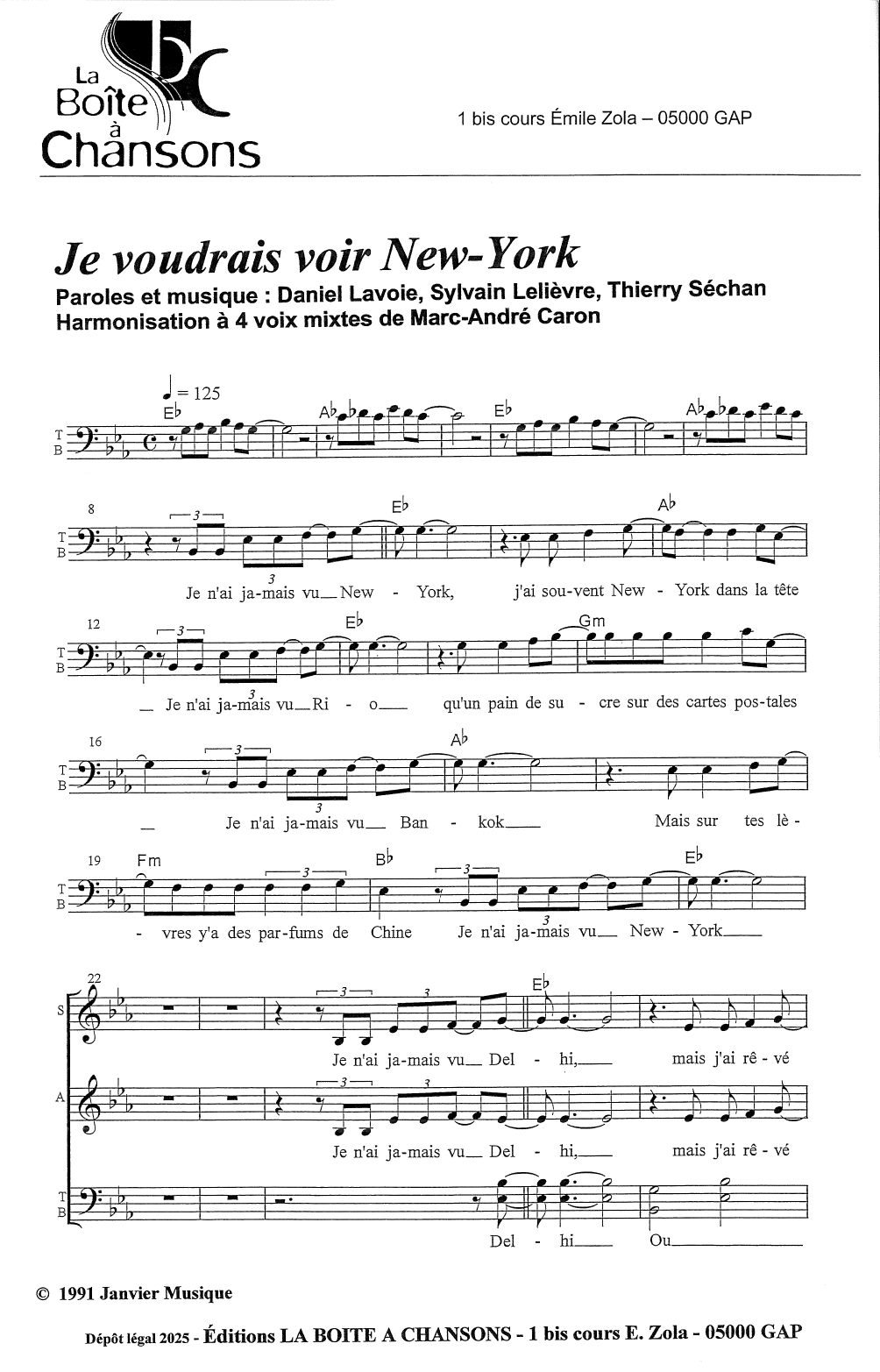 | Voix | 4 voix mixtes |