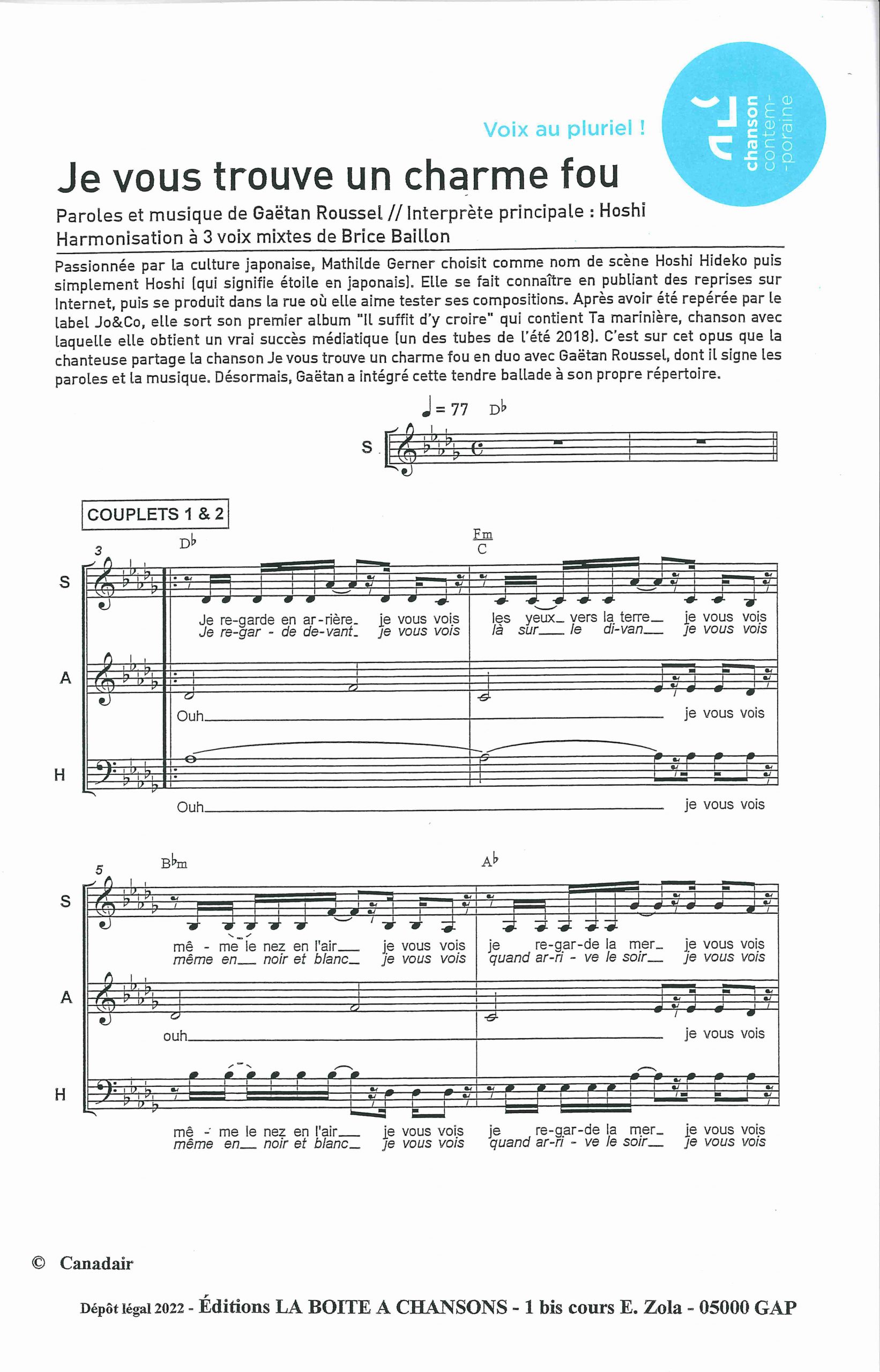 Paroles et musique : G. Roussel Harmonisation : Brice Baillon