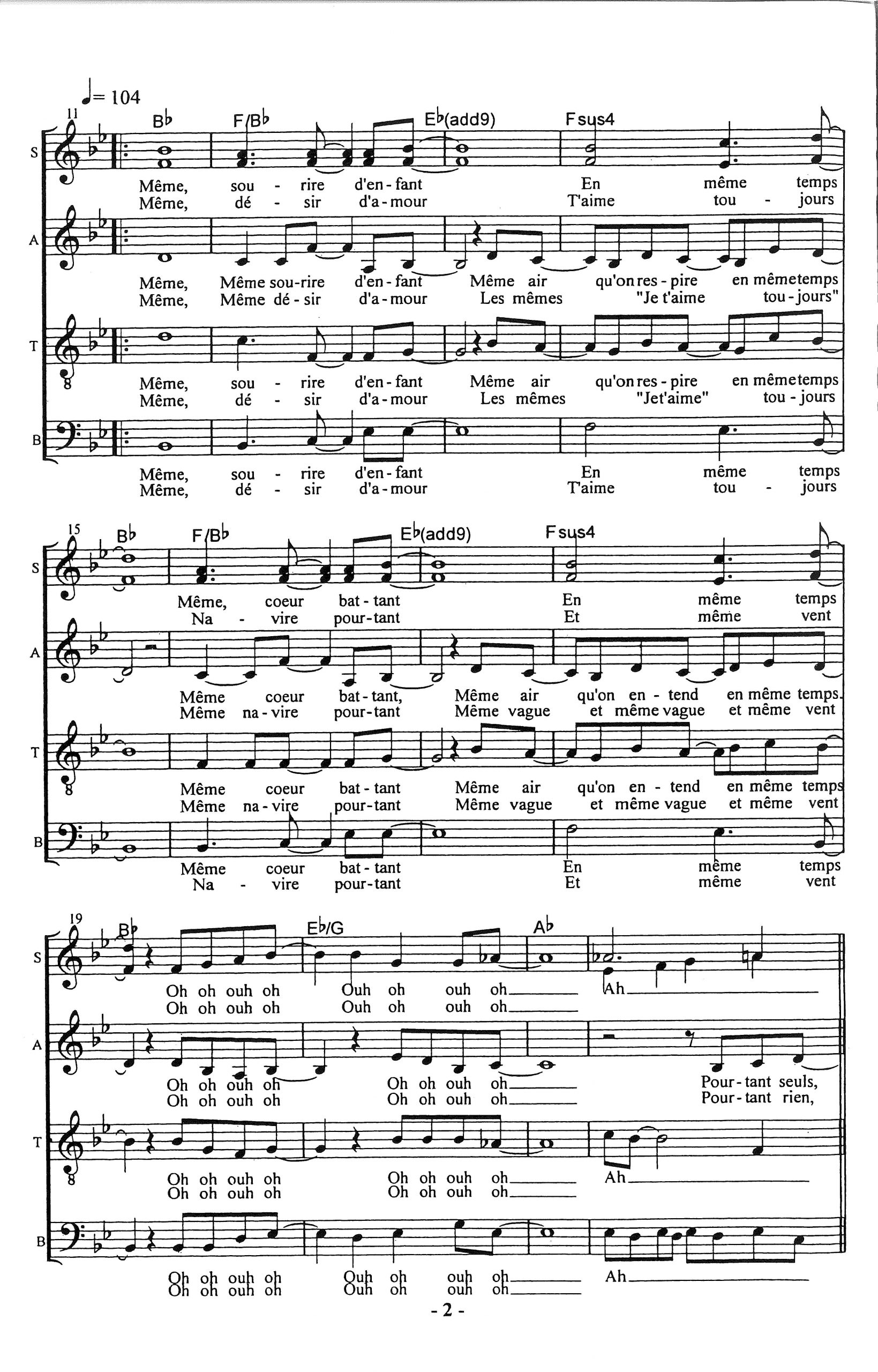 Paroles et musique de SOUCHON/VOULZY Harmonisation : Marc André CARON