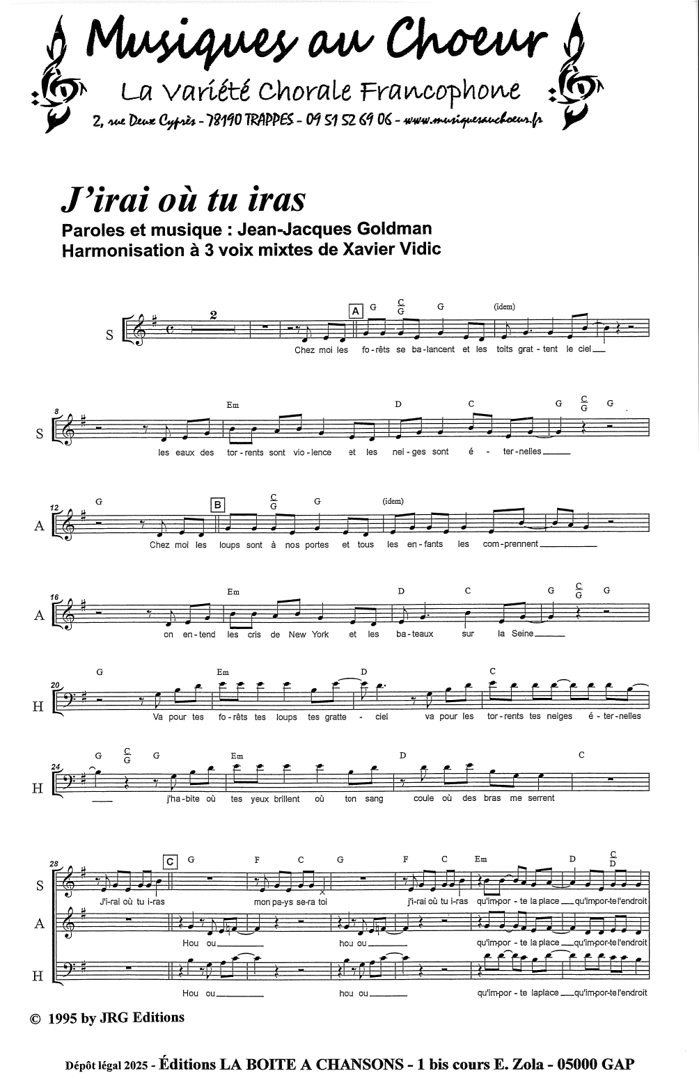 Harmonisation à 3 voix mixtes de Xavier Vidic