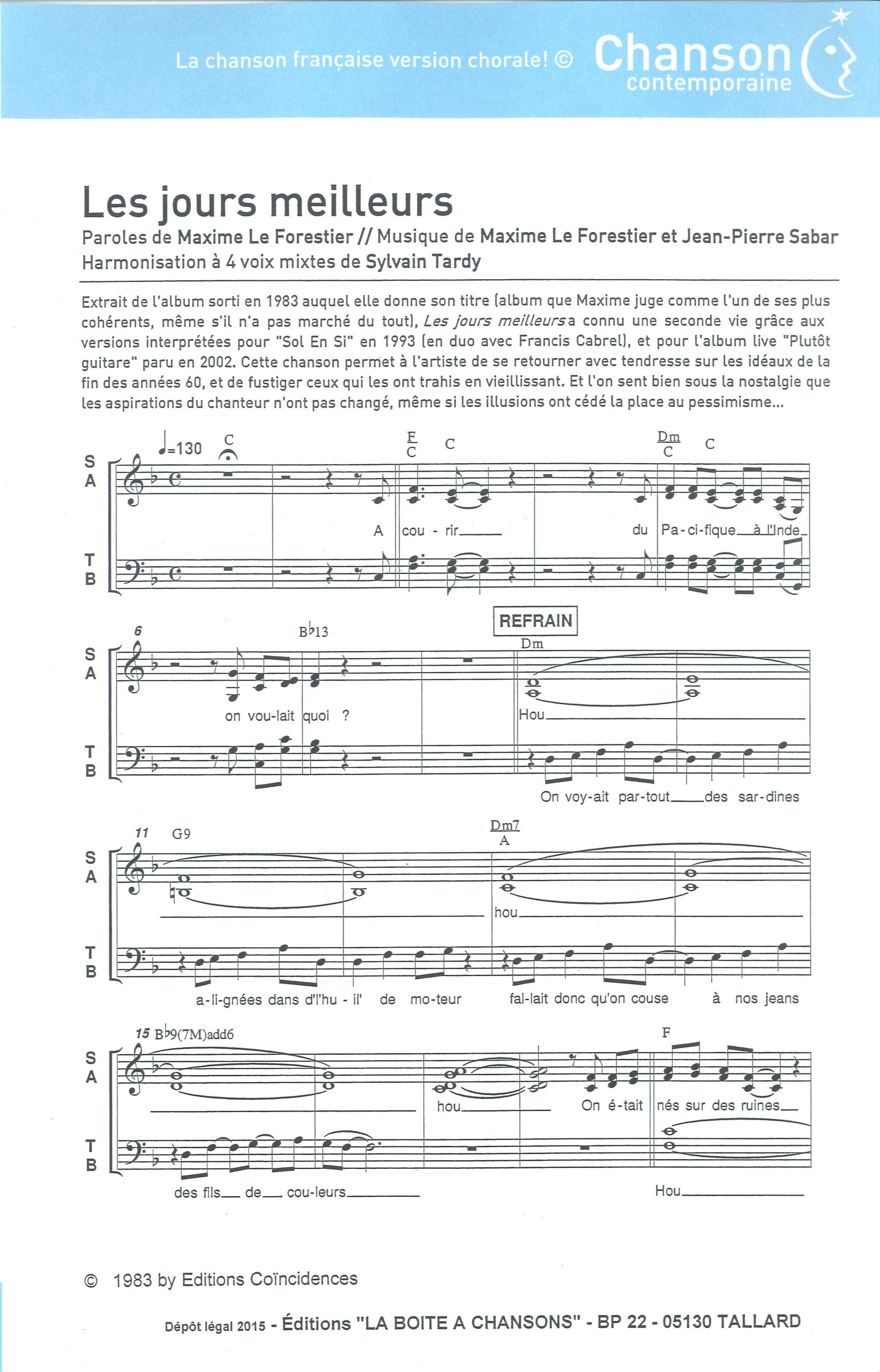 Paroles et musique de LE FORESTIER Harmonisation : Sylvain TARDY