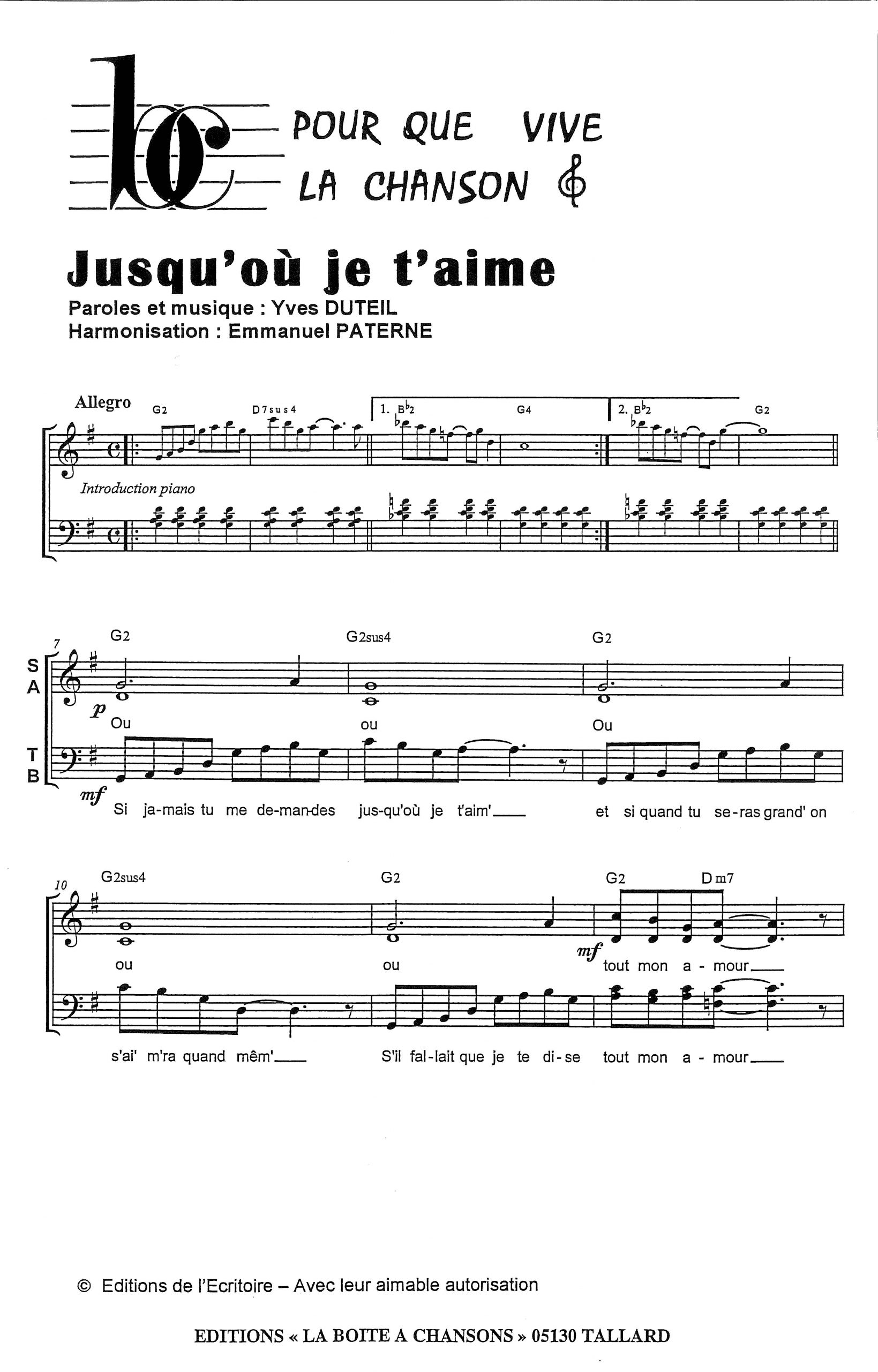 Paroles et musique de DUTEIL Harmonisation : Emmanuel PATERNE