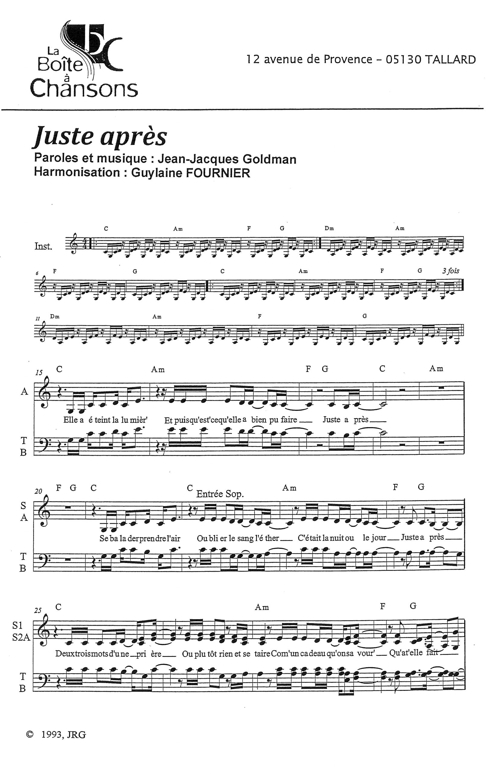 Paroles et musique de GOLDMAN Harmonisation : Guylaine FOURNIER