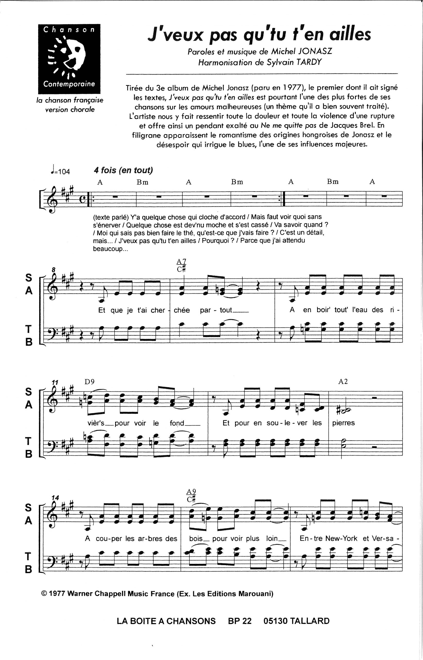 Paroles et musique de JONASZ Harmonisation : Sylvain TARDY