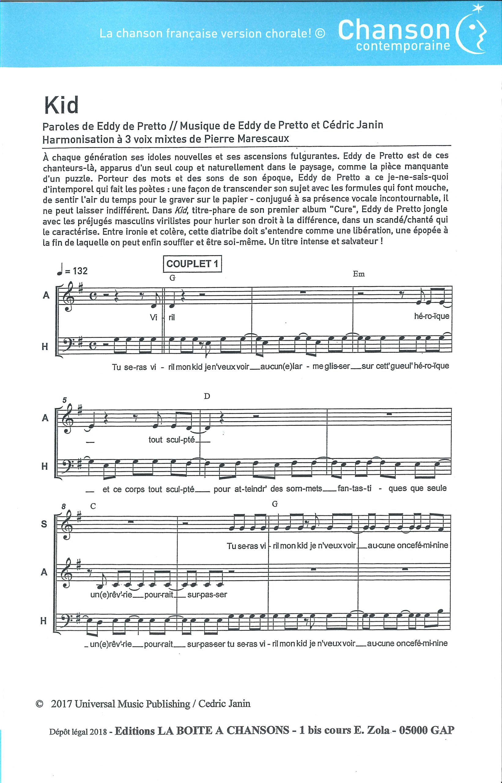 Paroles et musique : E. de Pretto / C. Janin Harmonisation : Pierre Marescaux