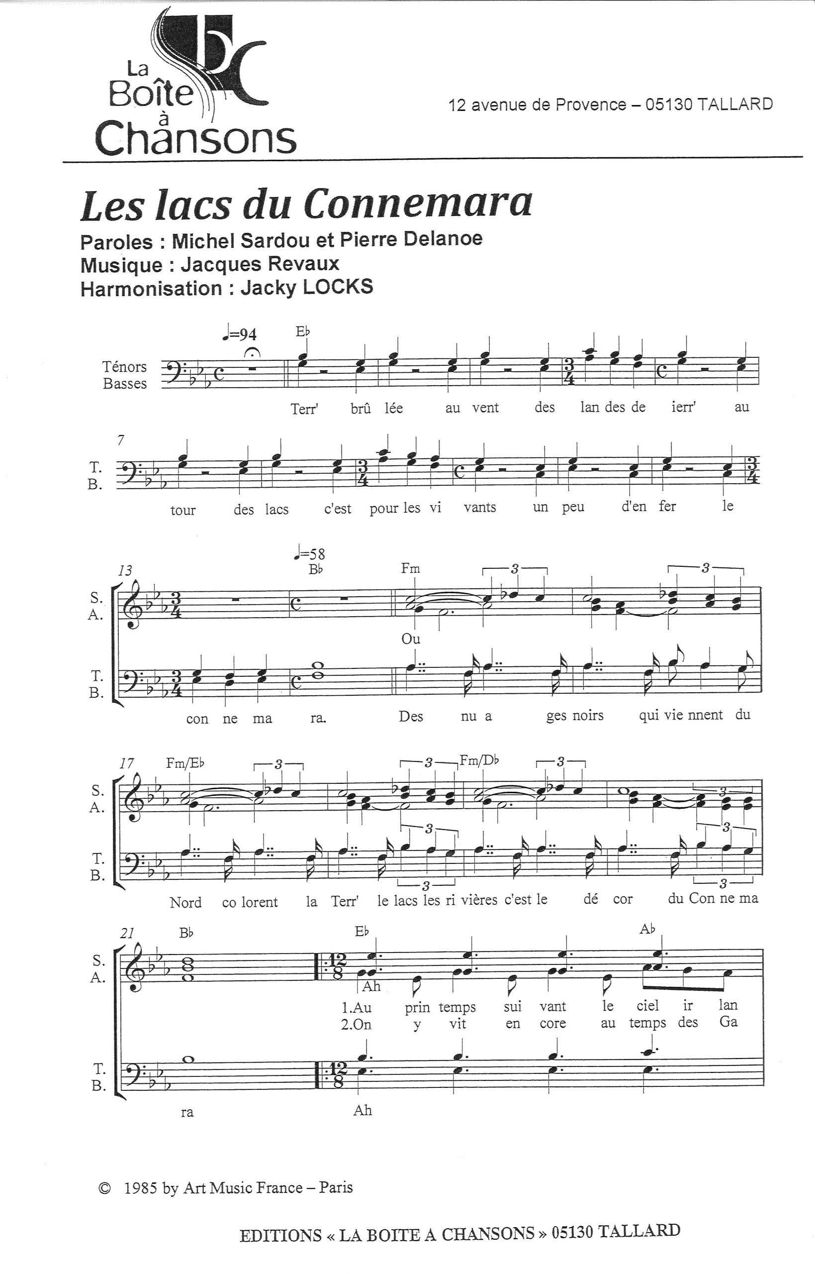 Paroles et musique de SARDOU/DELANOE/REVAUX Harmonisation : Jacky LOCKS