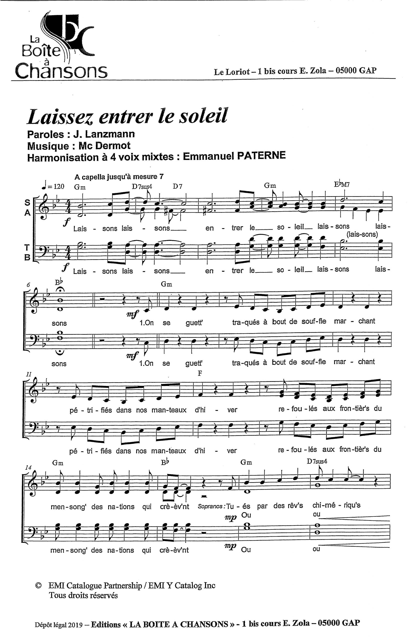 Paroles et musique : J. Lanzmann / Mc Dermot Harmonisation : Emmanuel Paterne