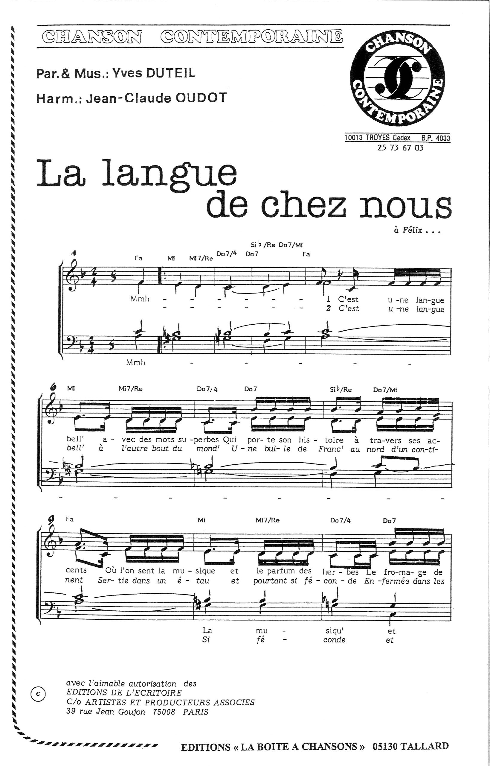 Paroles et musique : Y. Duteil Harmonisation : Jean Claude OUDOT