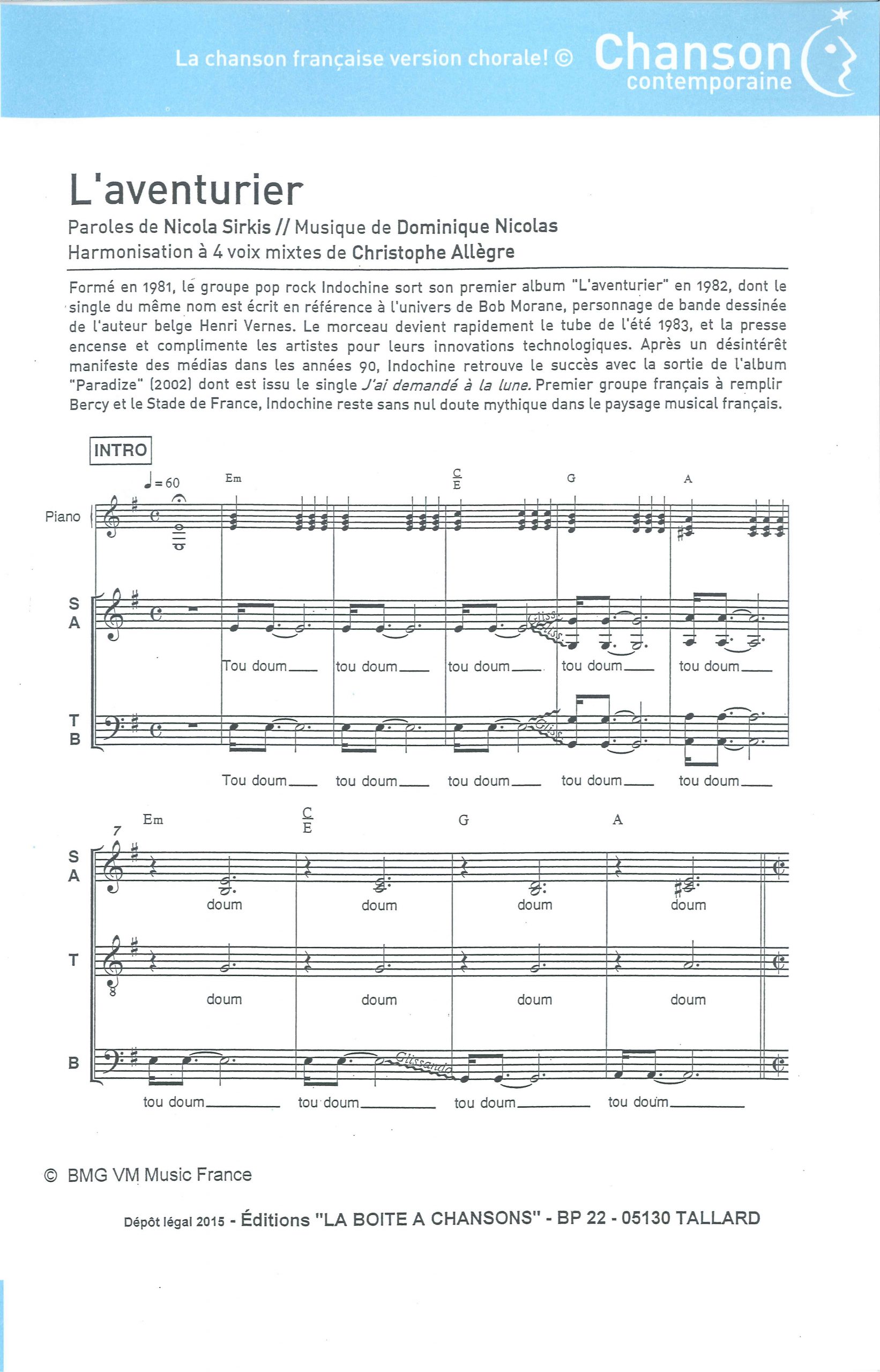 Paroles et musique : N. Sirkis / D. Nicolas Harmonisation : Christophe ALLEGRE