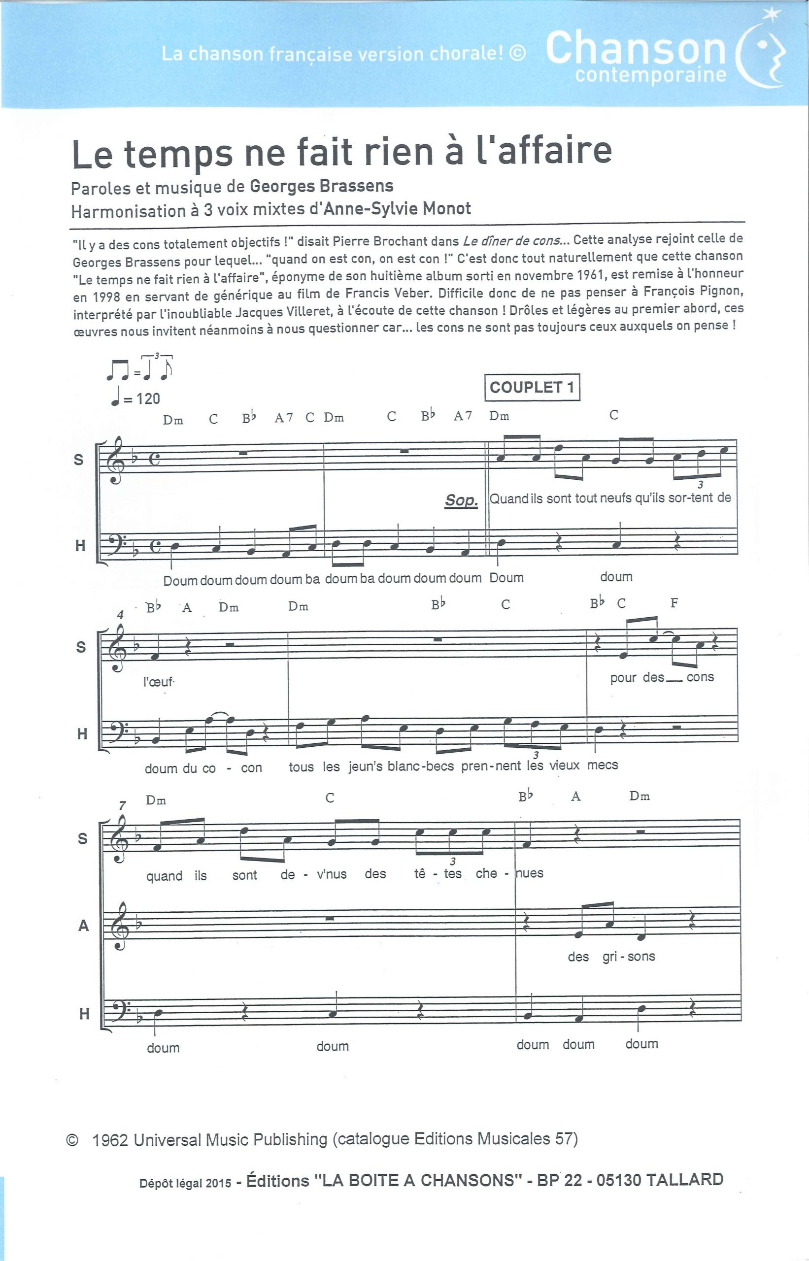 Paroles et musique : G. Brassens Harmonisation : Anne Sylvie MONOT