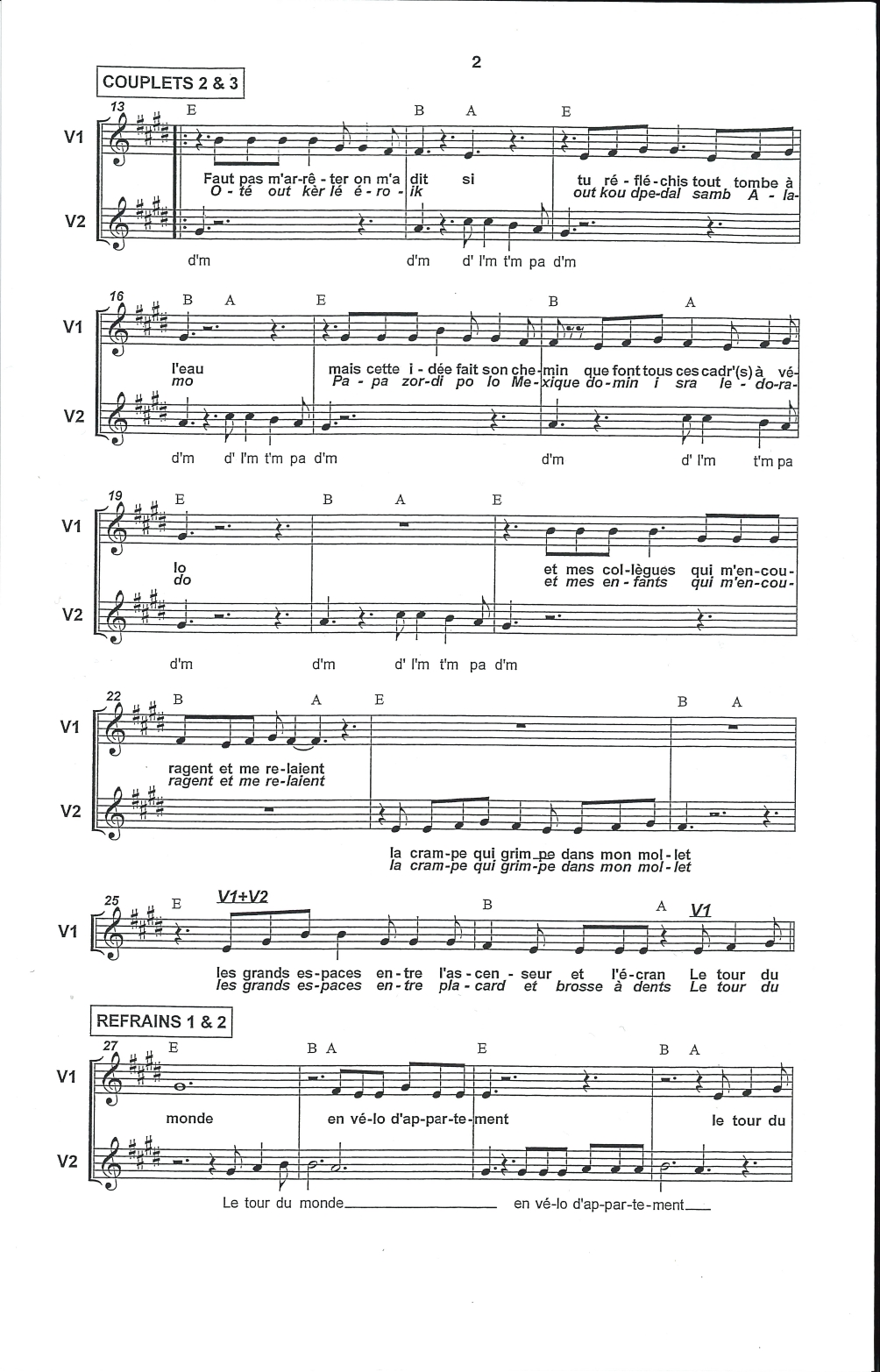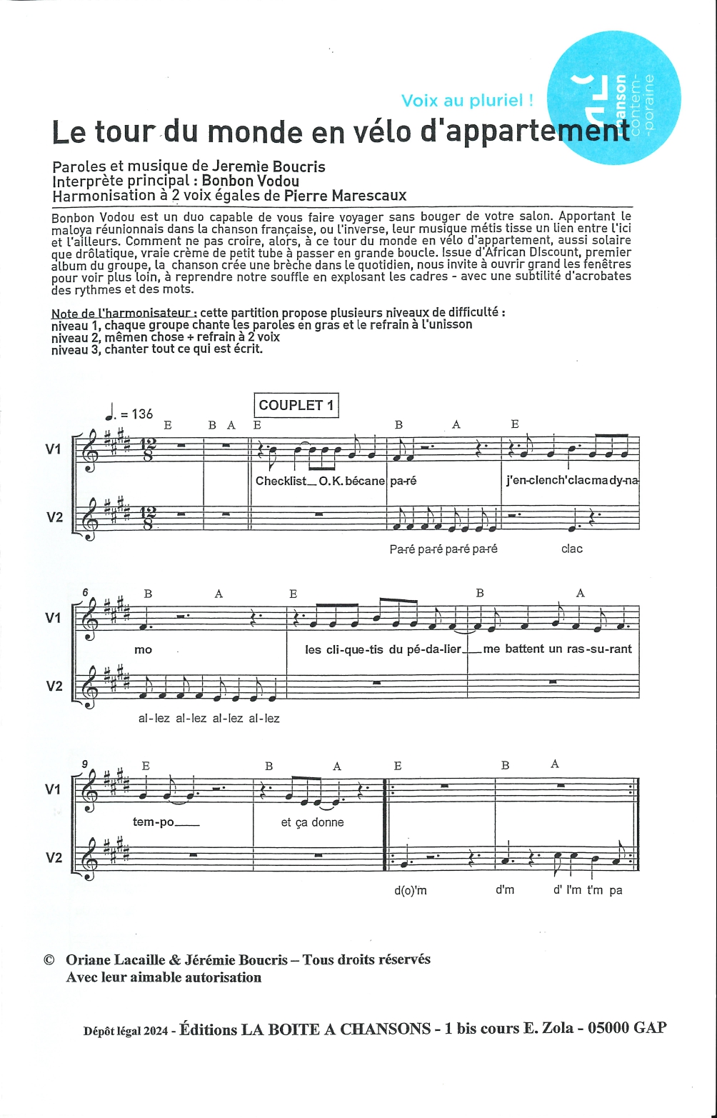 Harmonisation à 2 voix égales de Pierre Marescaux