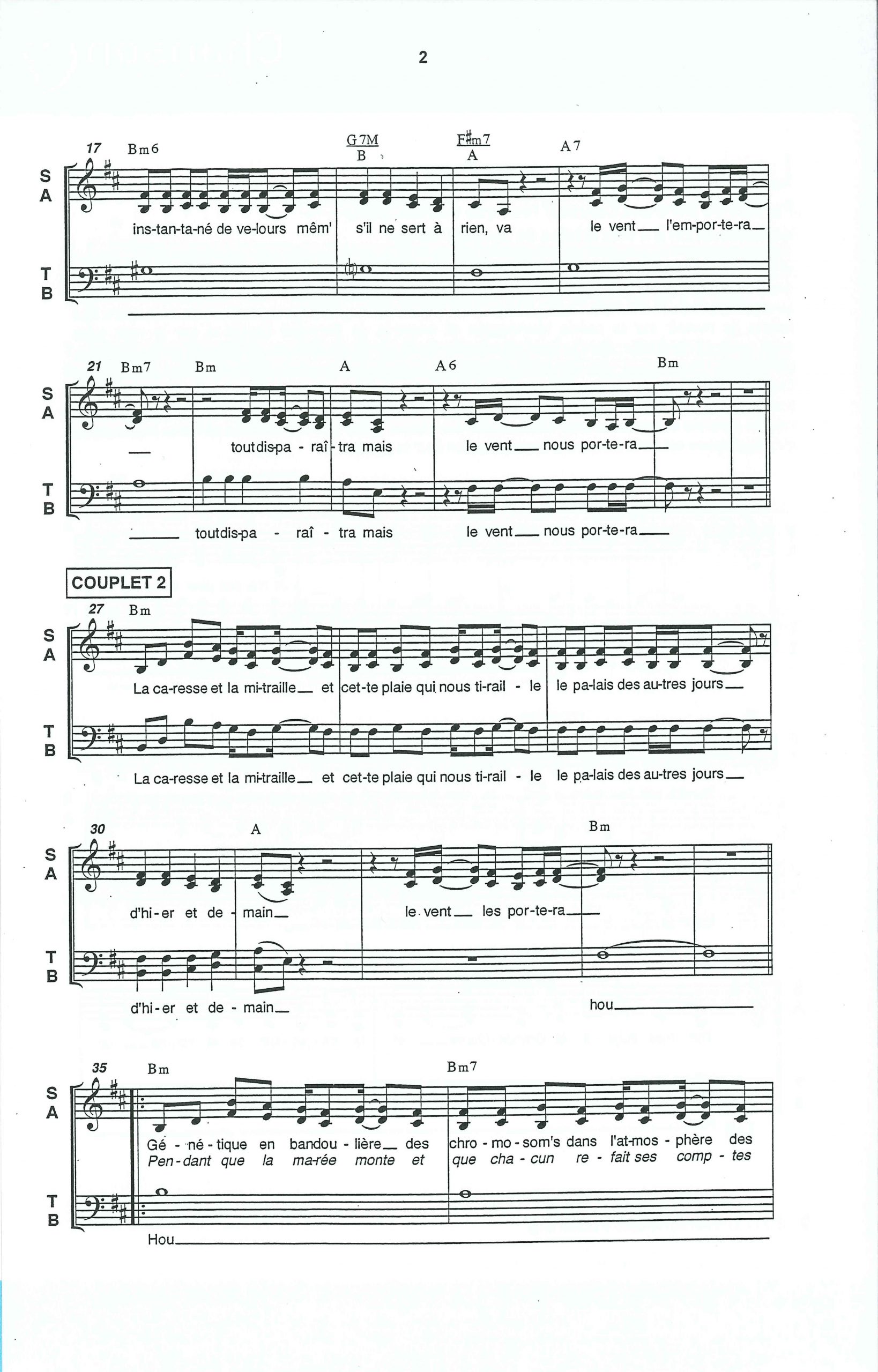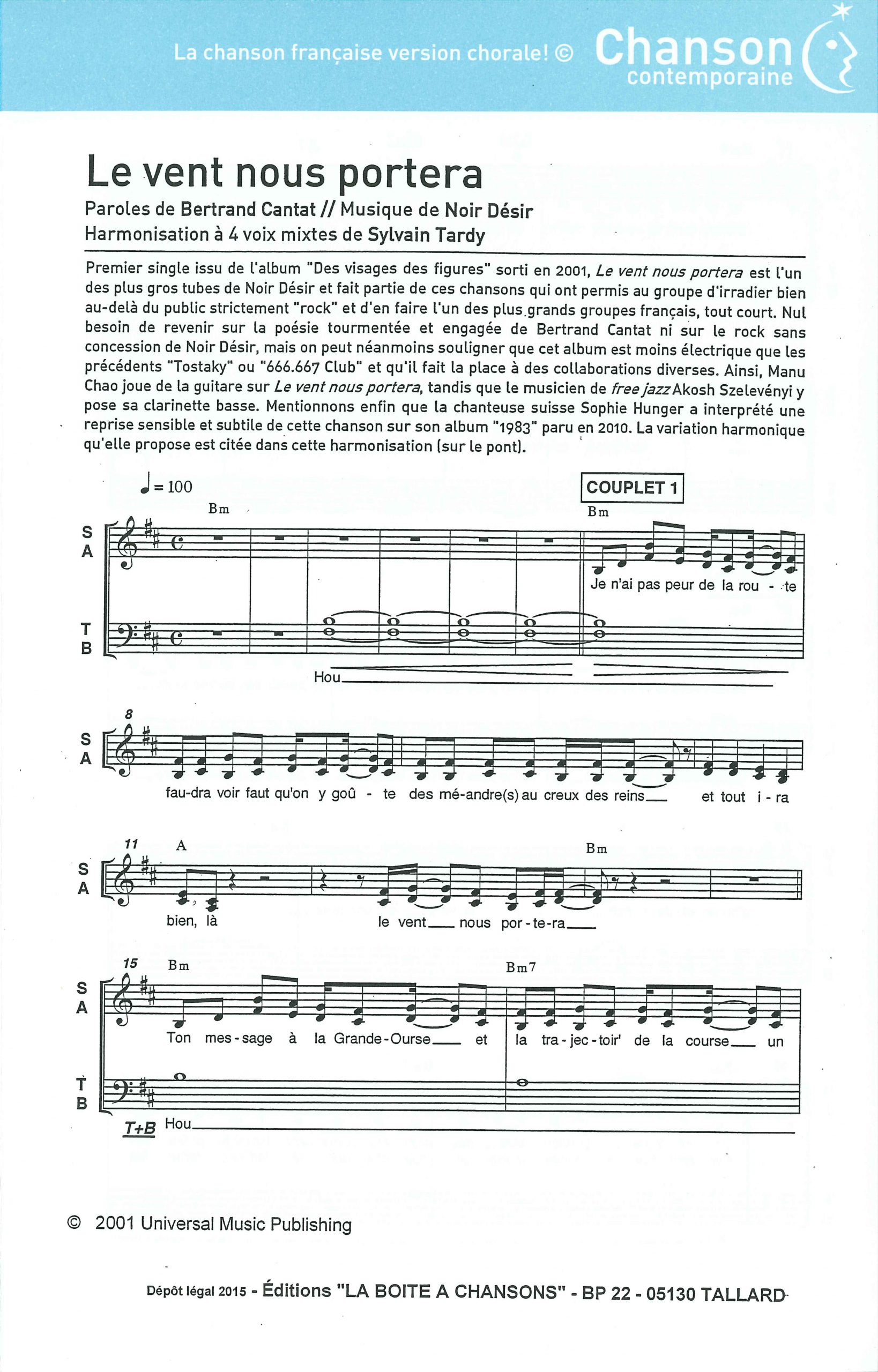 Paroles et musique : B. Cantat / Noir Désir Harmonisation : Sylvain TARDY