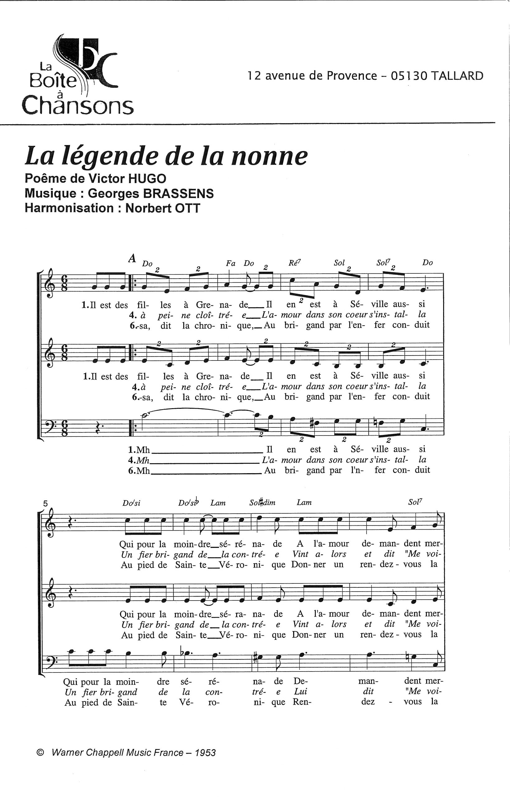 Paroles et musique de BRASSENS Harmonisation : Norbert OTT