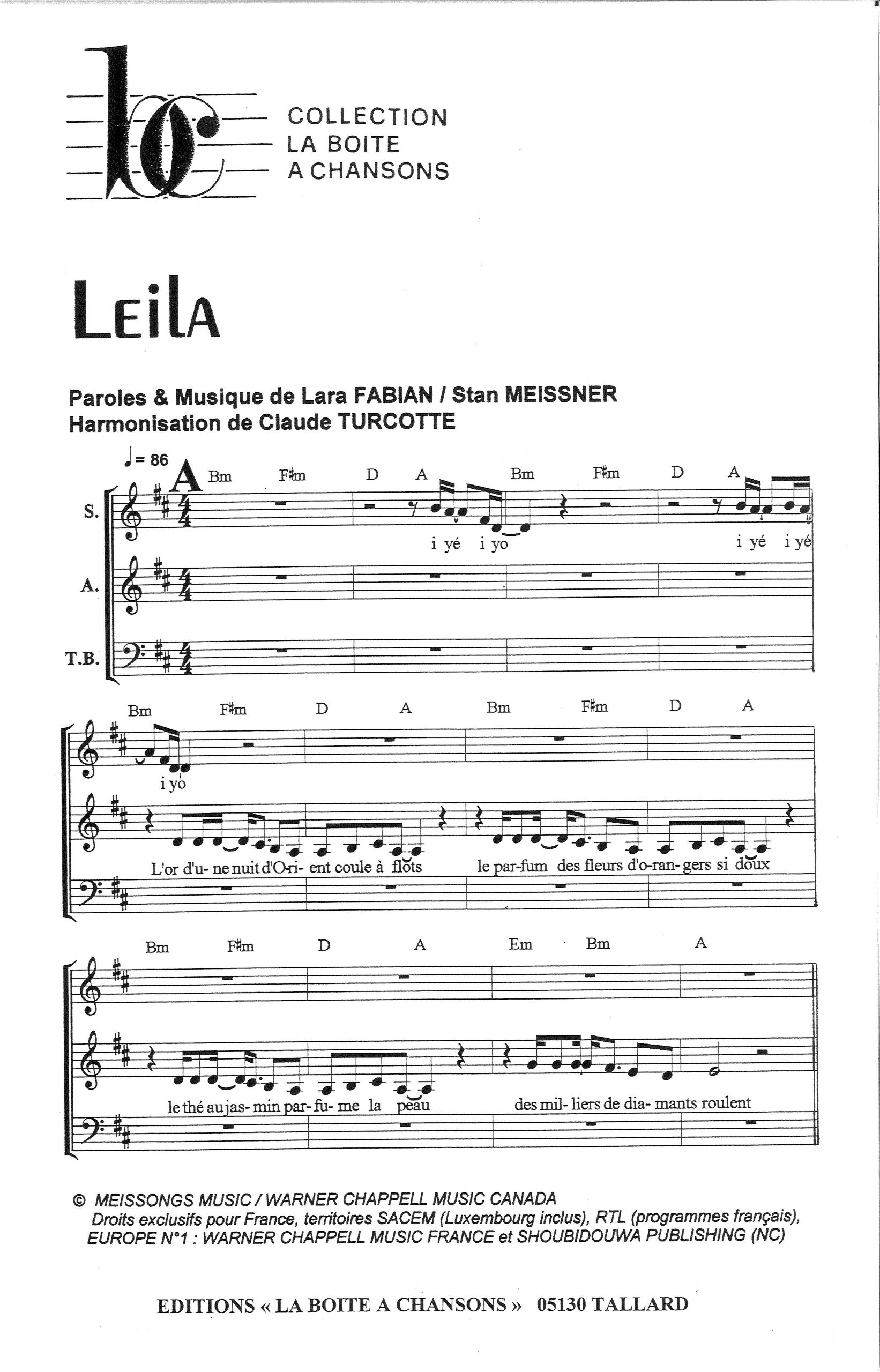 Paroles et musique de FABIAN/MEISSNER Harmonisation : Claude TURCOTTE