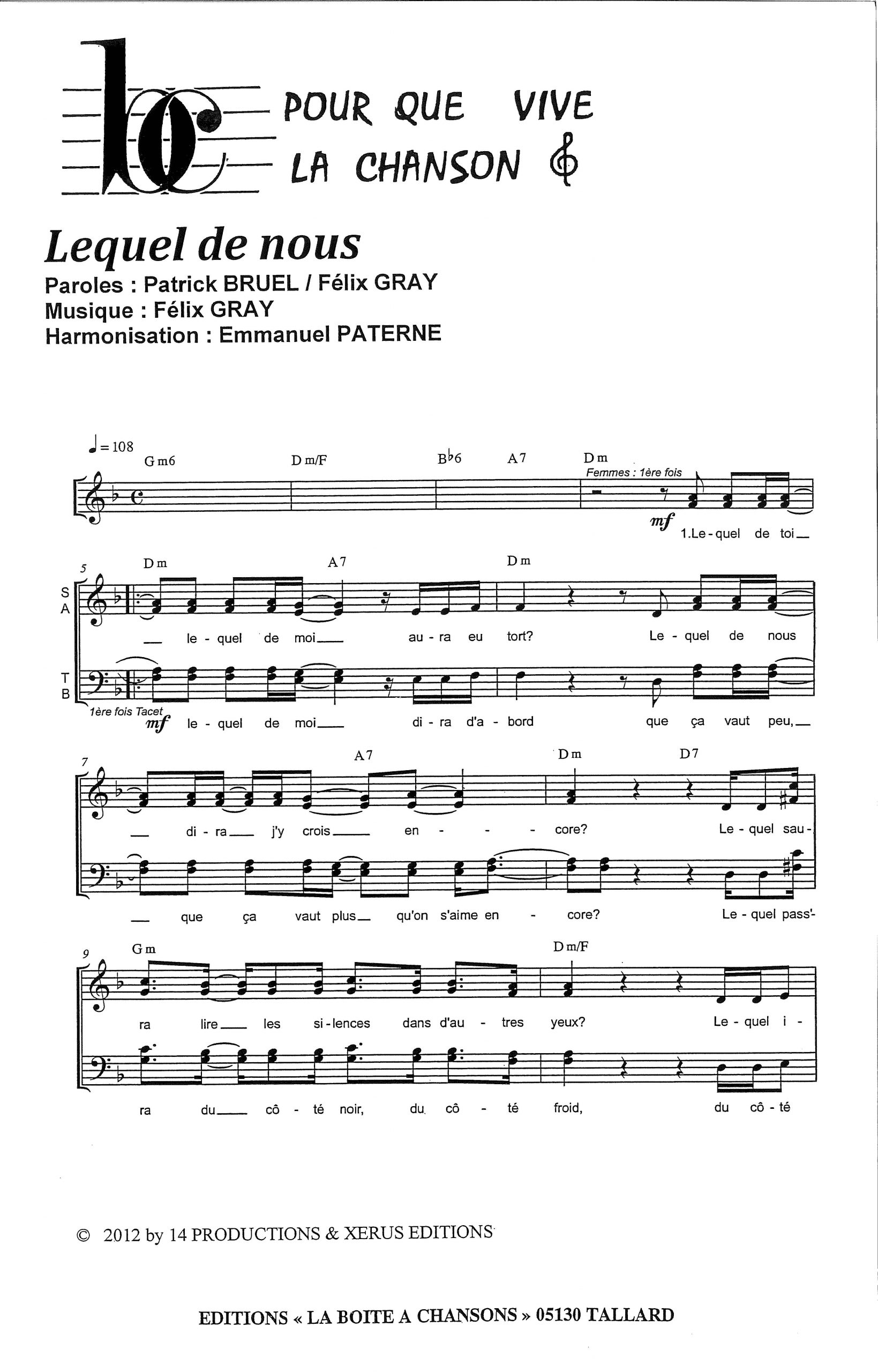 Paroles et musique de BRUEL Harmonisation : Emmanuel PATERNE