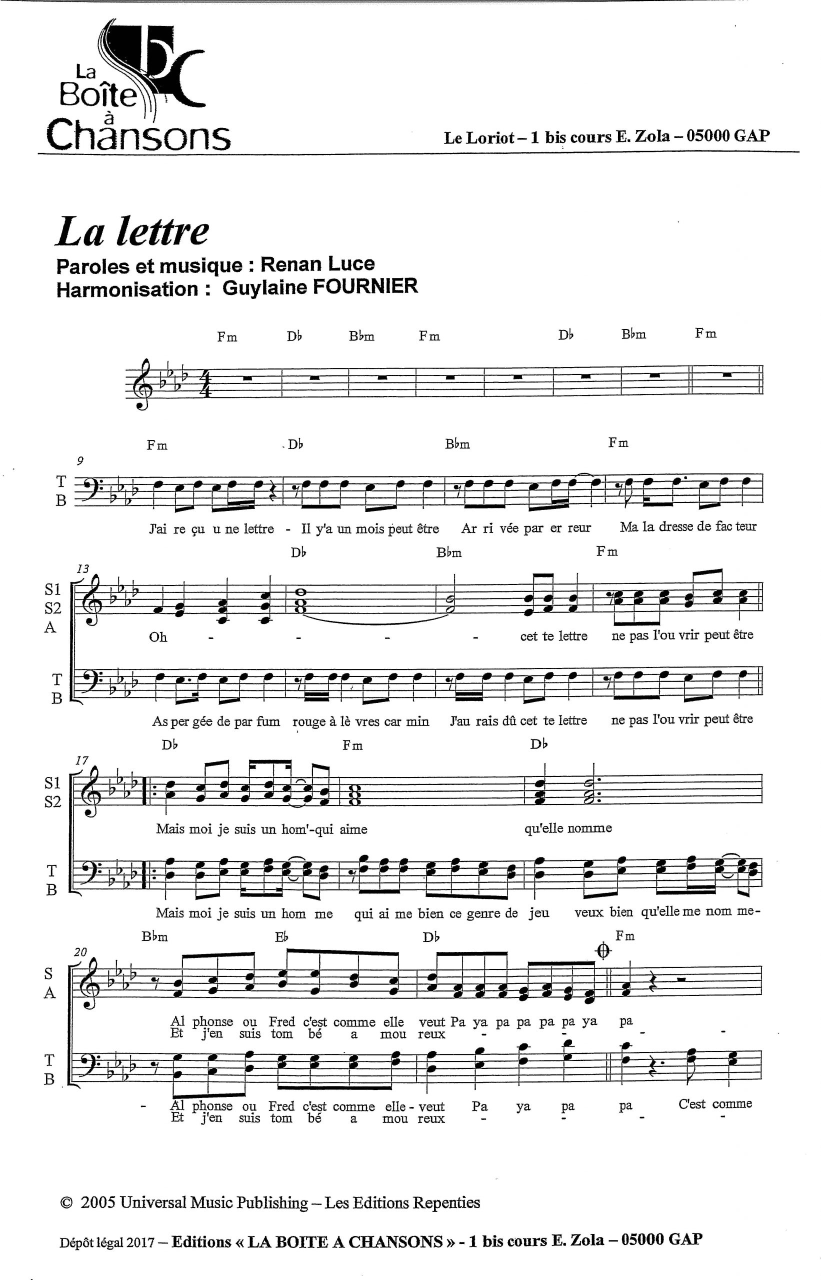 Paroles et musique : R. Luce Harmonisation : Guylaine FOURNIER