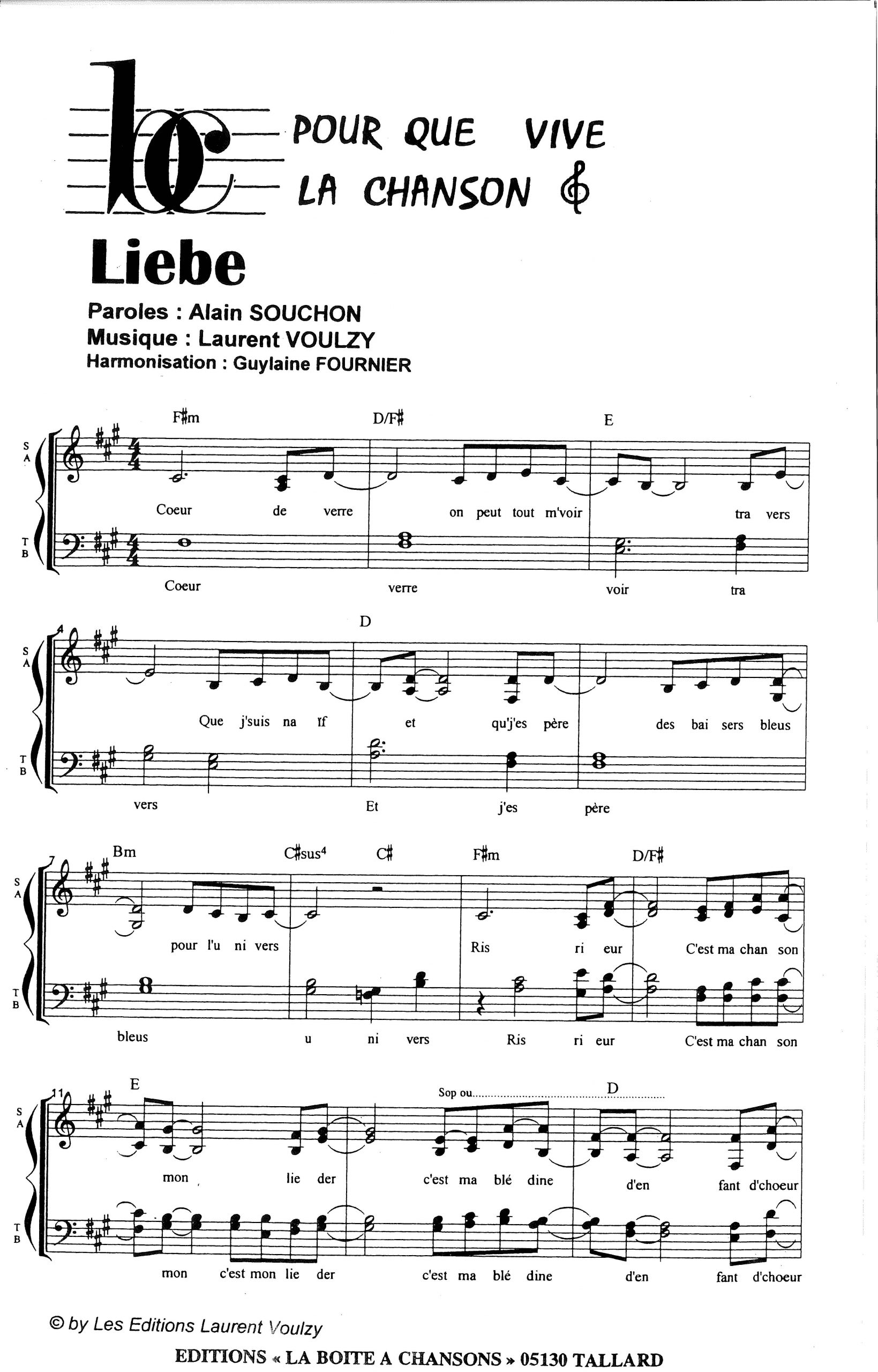 Paroles et musique de SOUCHON/VOULZY Harmonisation : Guylaine FOURNIER
