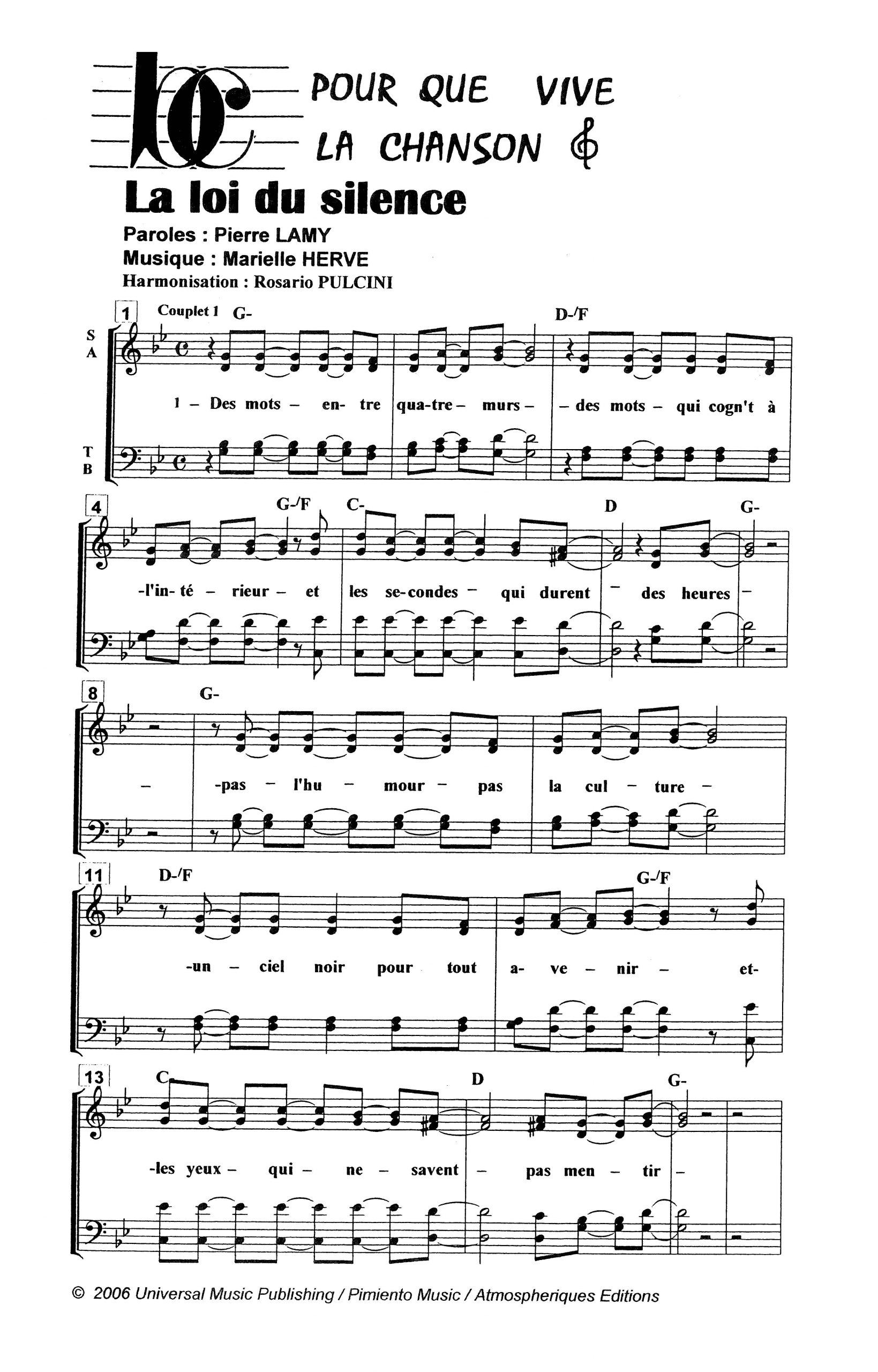 Paroles et musique de LAMY/HERVE Harmonisation : Rosario PULCINI