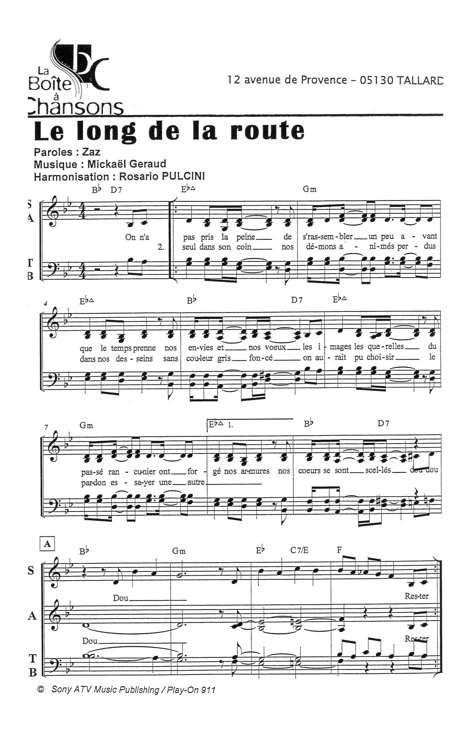 Paroles et musique de ZAZ Harmonisation : Rosario PULCINI