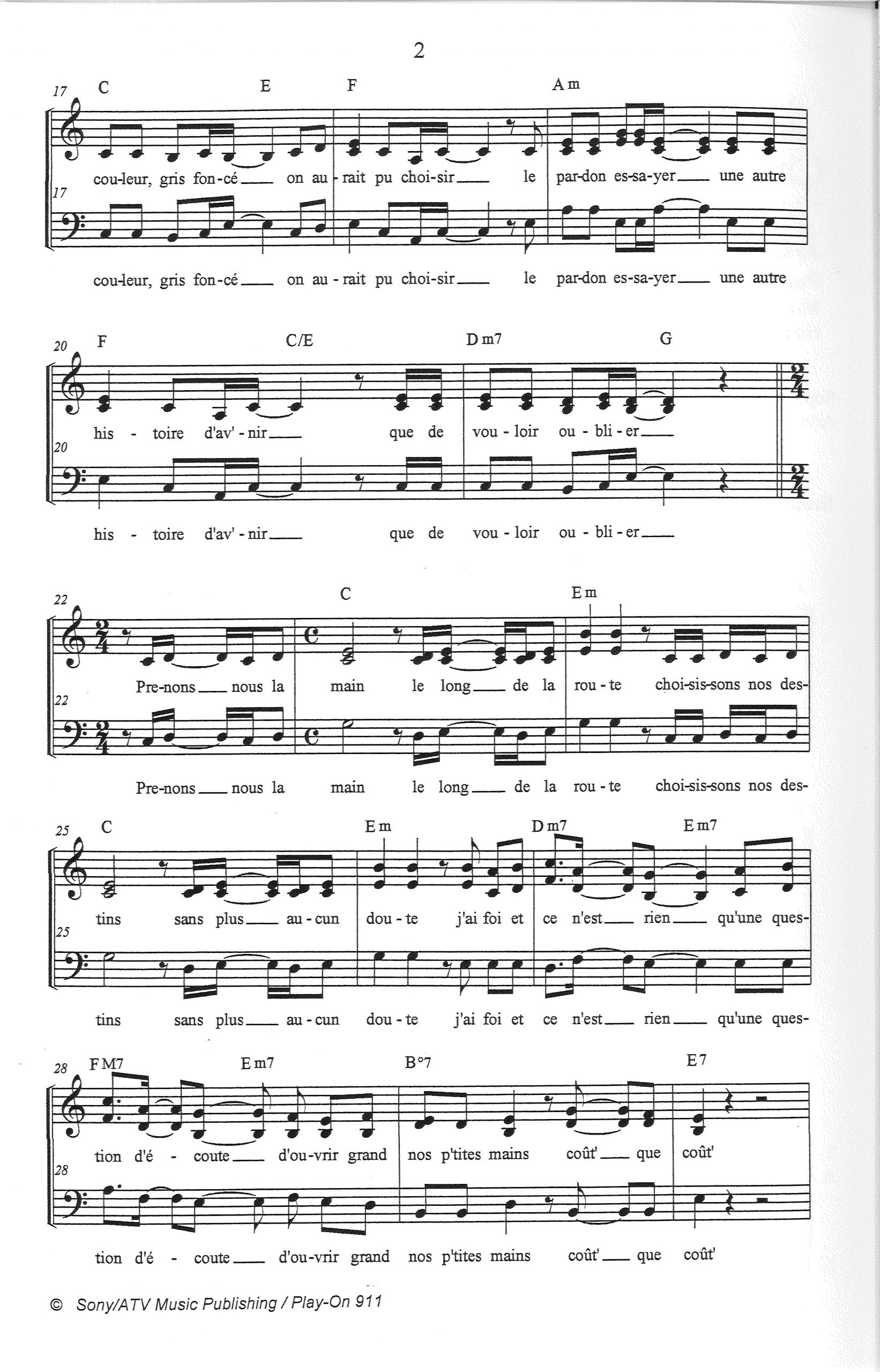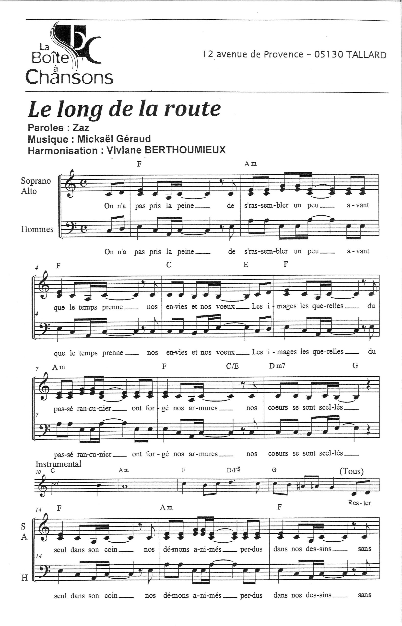 Paroles et musique de ZAZ Harmonisation : Viviane BERTHOUMIEUX