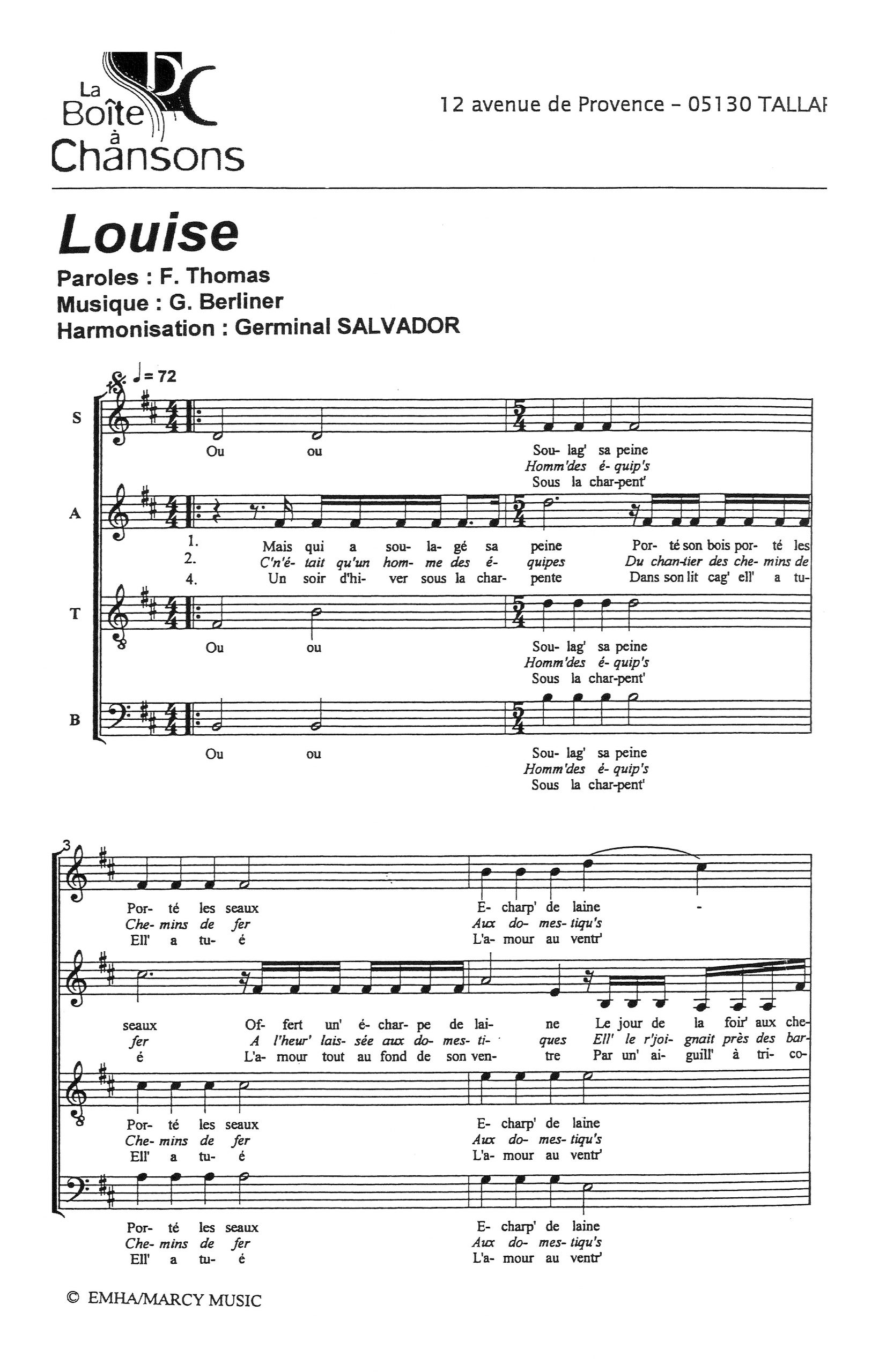 Paroles et musique de THOMAS/BERLINER Harmonisation : Germinal SALVADOR
