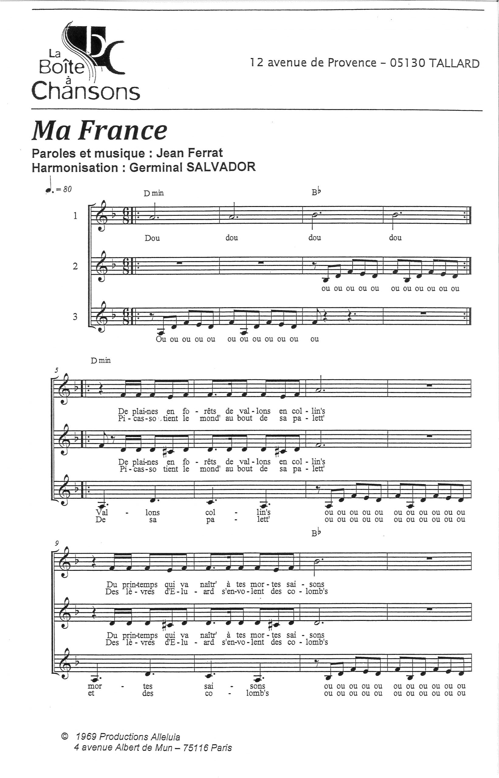 Paroles et musique de FERRAT Harmonisation : Germinal SALVADOR