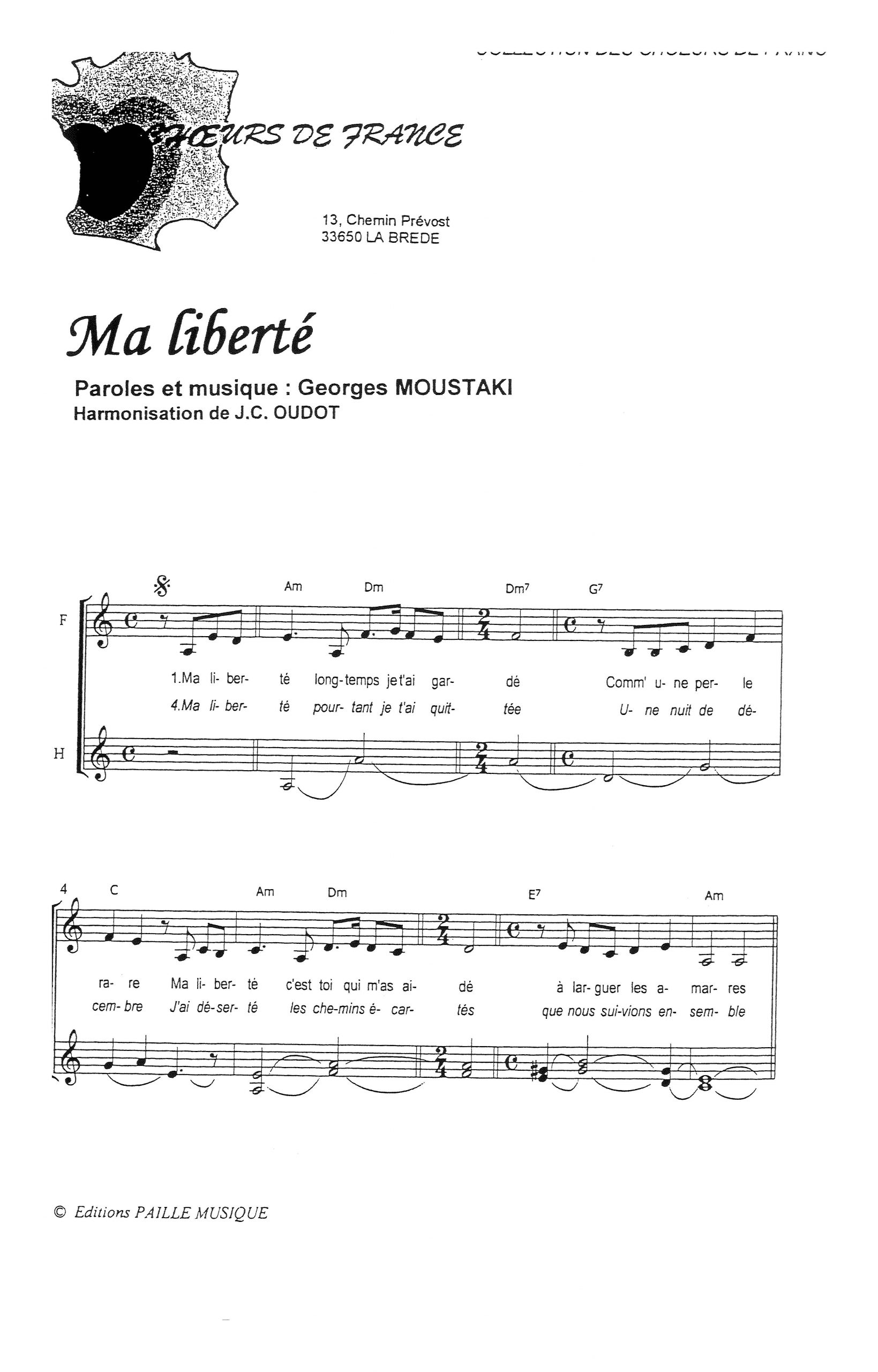 Paroles et musique de MOUSTAKI Harmonisation : Jean Claude OUDOT