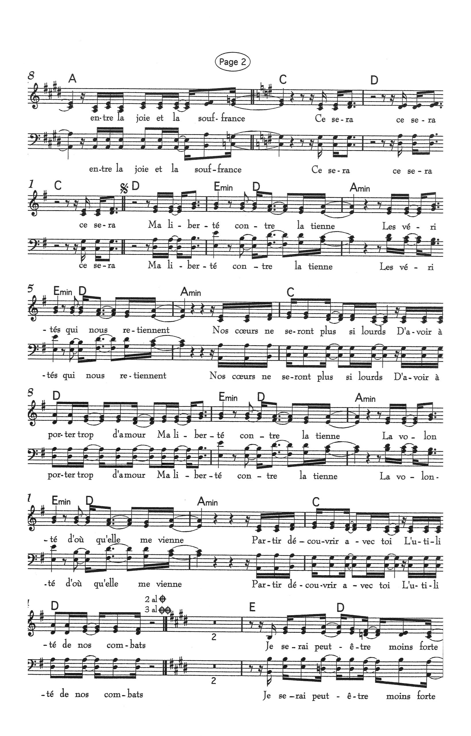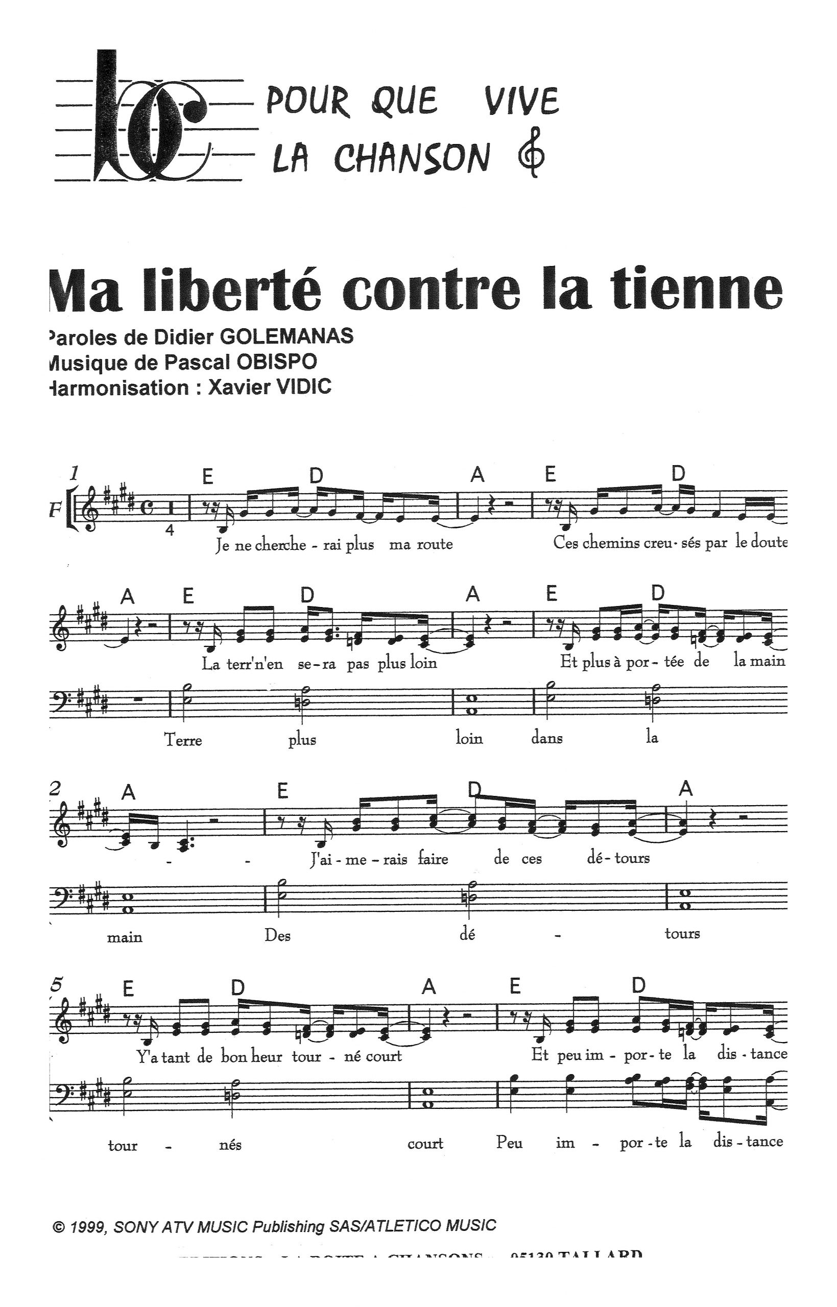 Paroles et musique de OBISPO/GOLMANAS Harmonisation : Xavier VIDIC