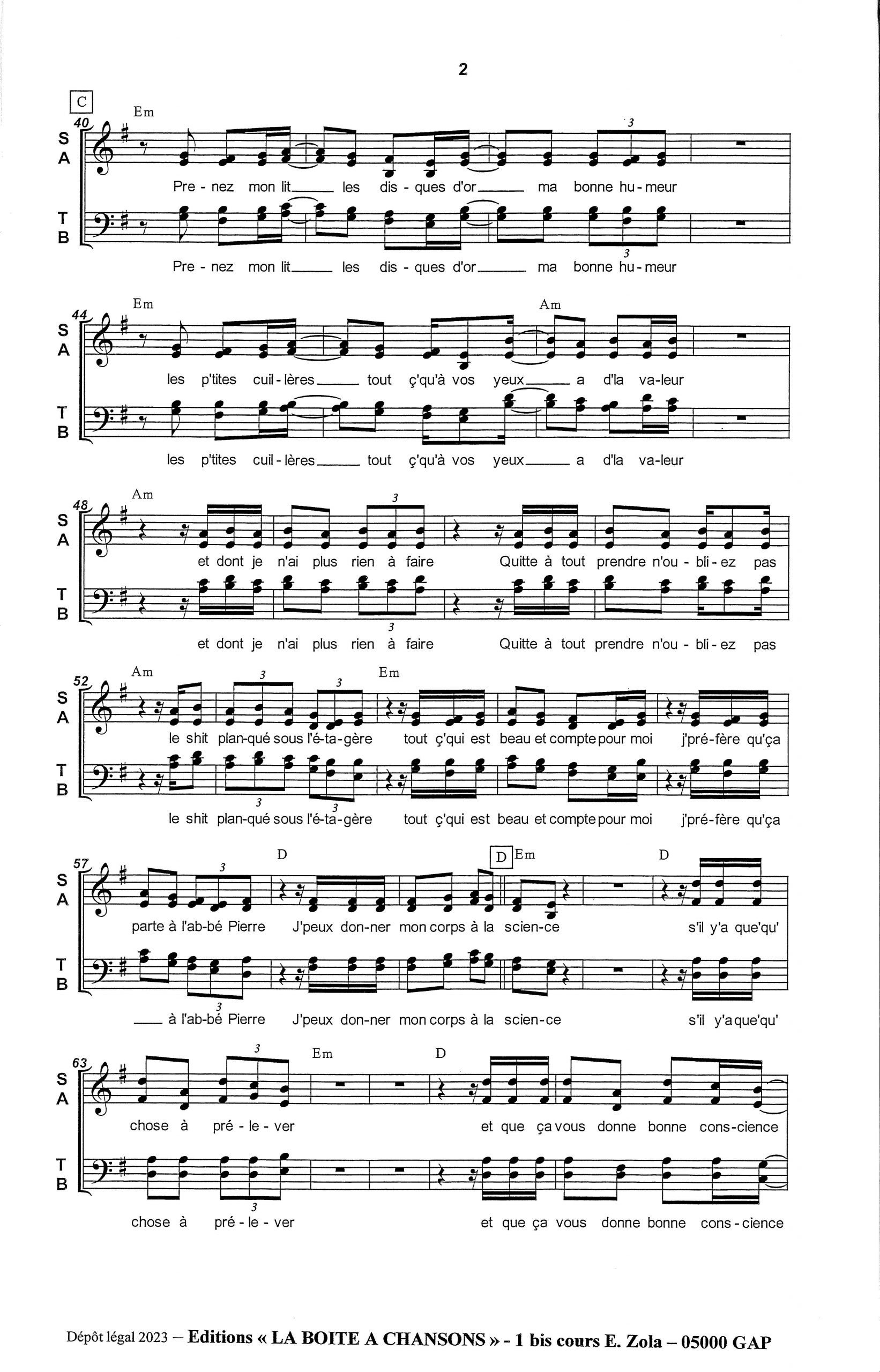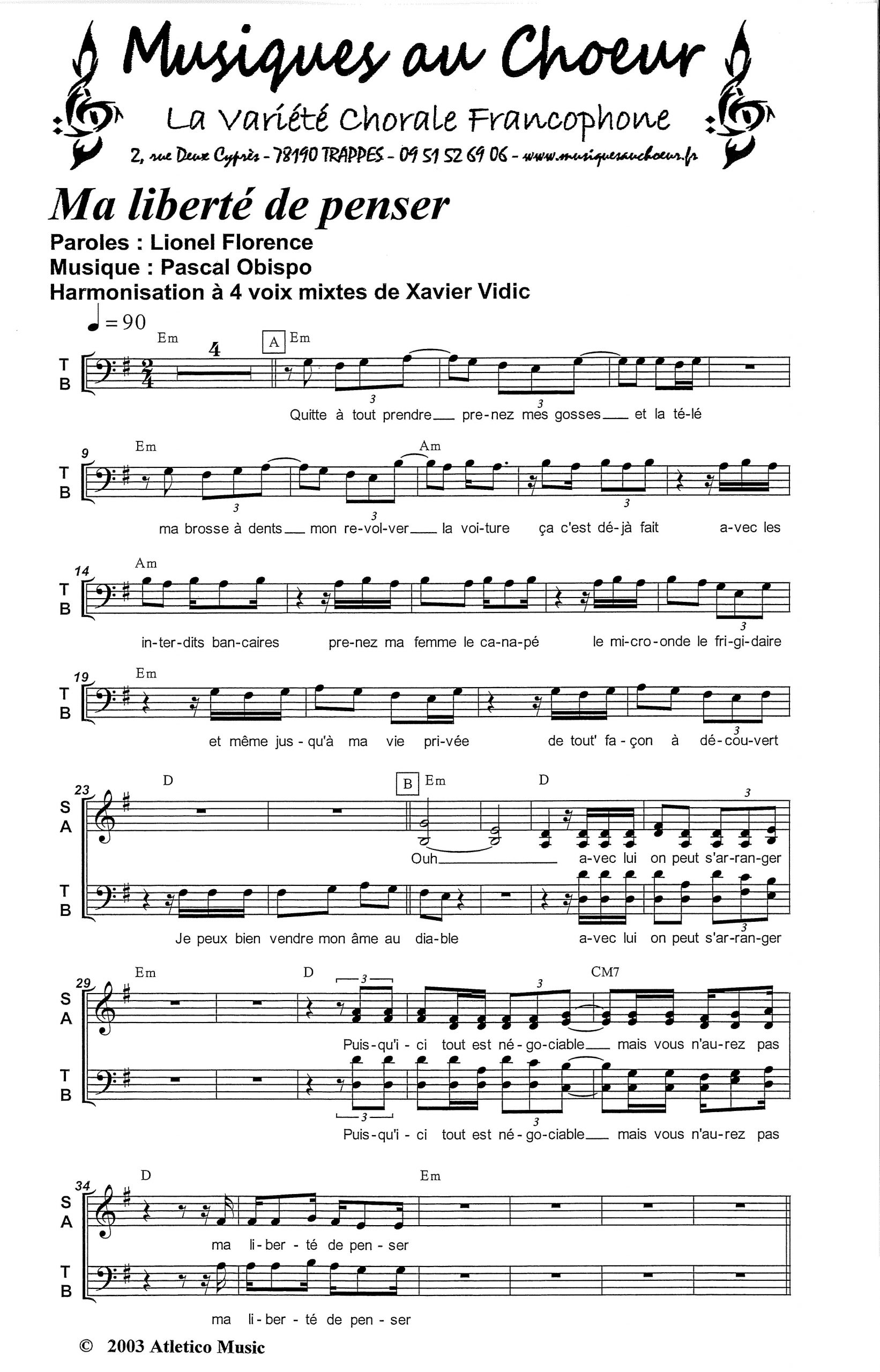 Paroles et musique : Florence/Obispo/Pagny Harmonisation : Xavier Vidicdd