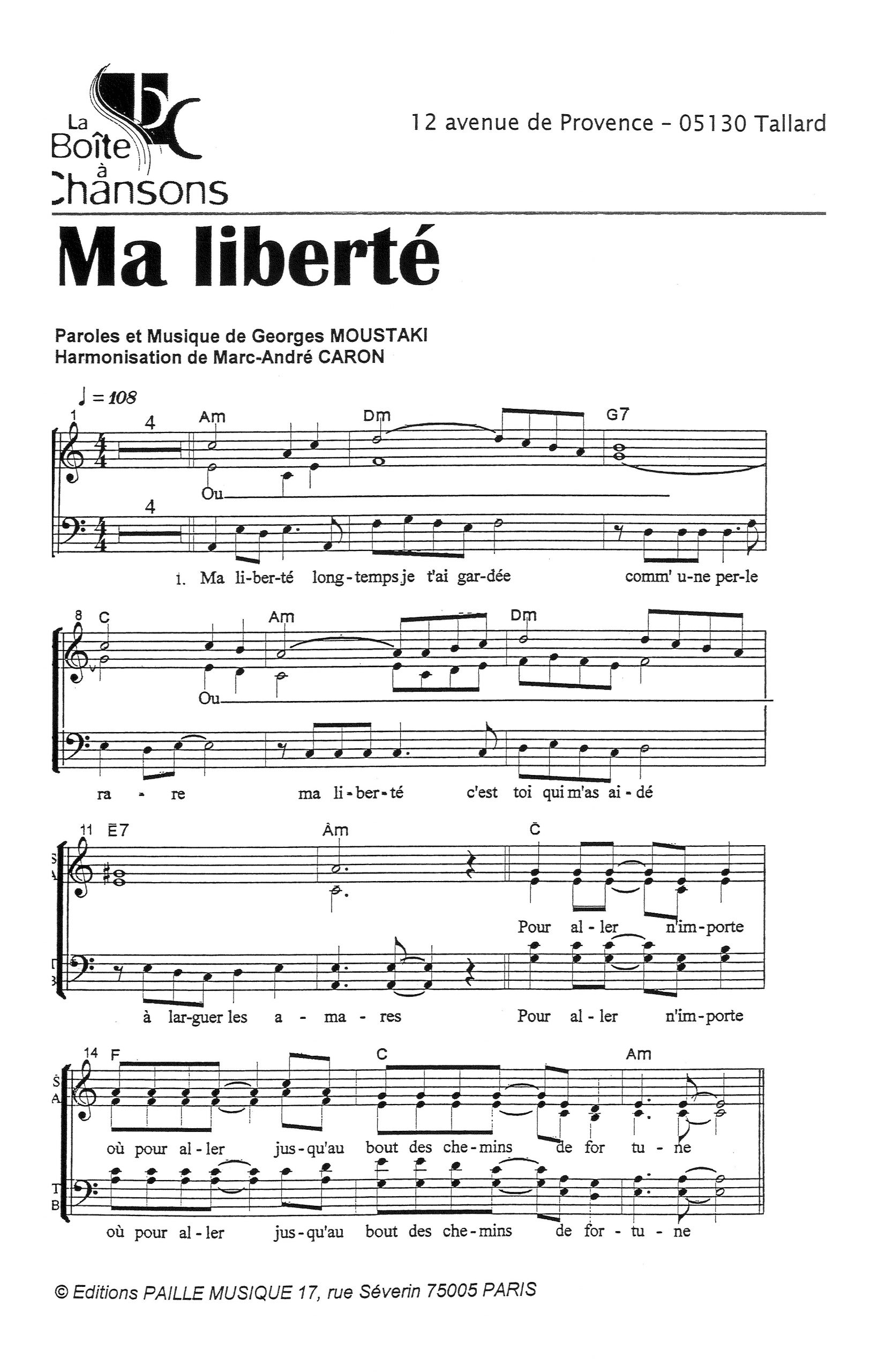 Paroles et musique de MOUSTAKI Harmonisation : Marc André CARON