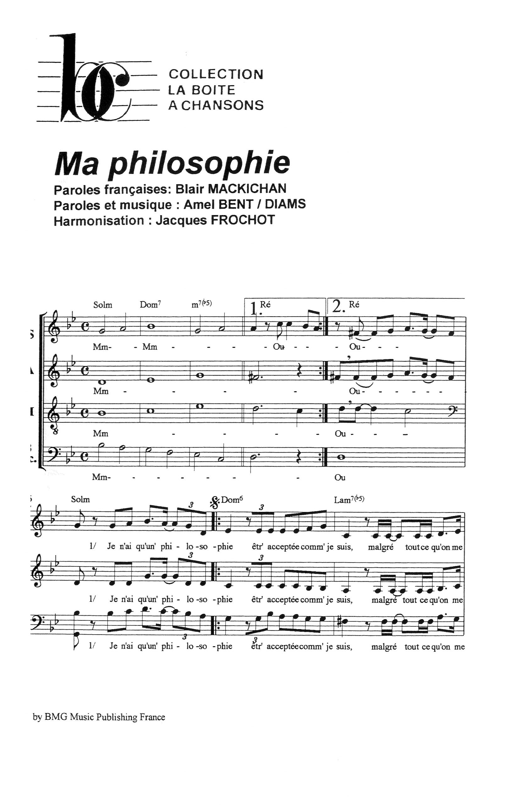 Paroles et musique de MACKICHAN / BENT / DIAMS Harmonisation : Jacques FROCHOT