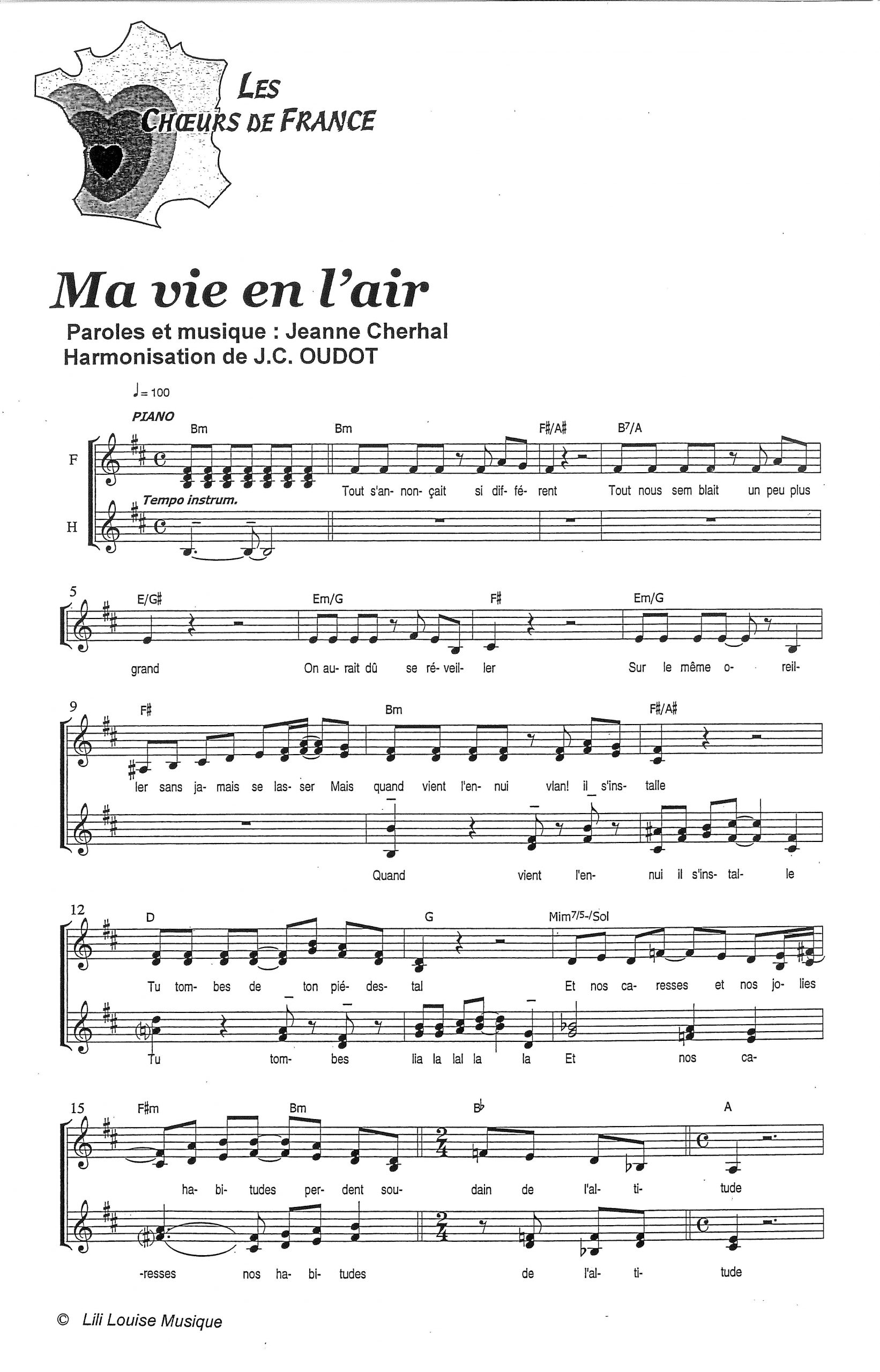 Paroles et musique : J. Cherhal Harmonisation : Jean Claude OUDOT