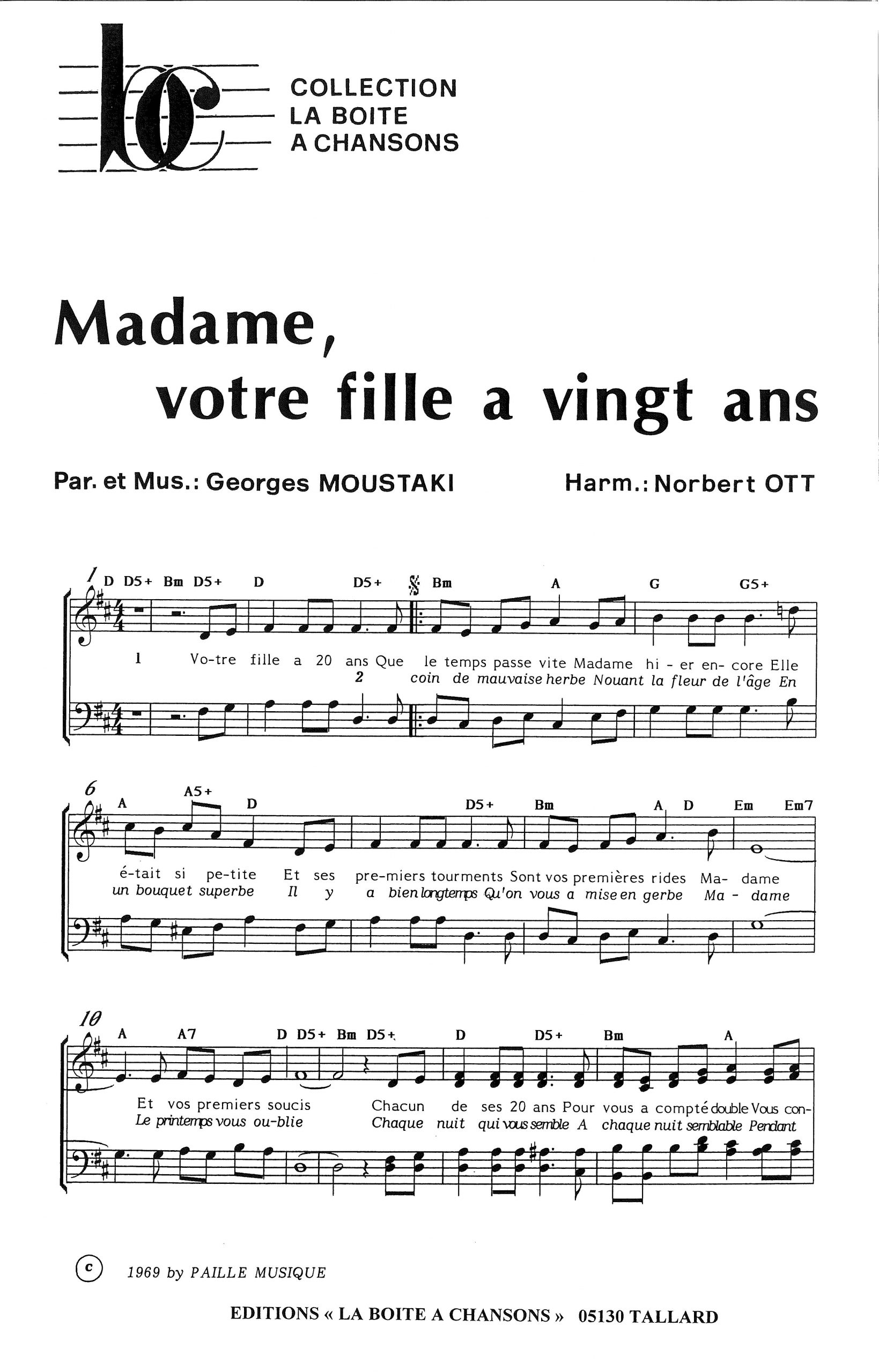 Paroles et musique de MOUSTAKI Harmonisation : Norbert OTT