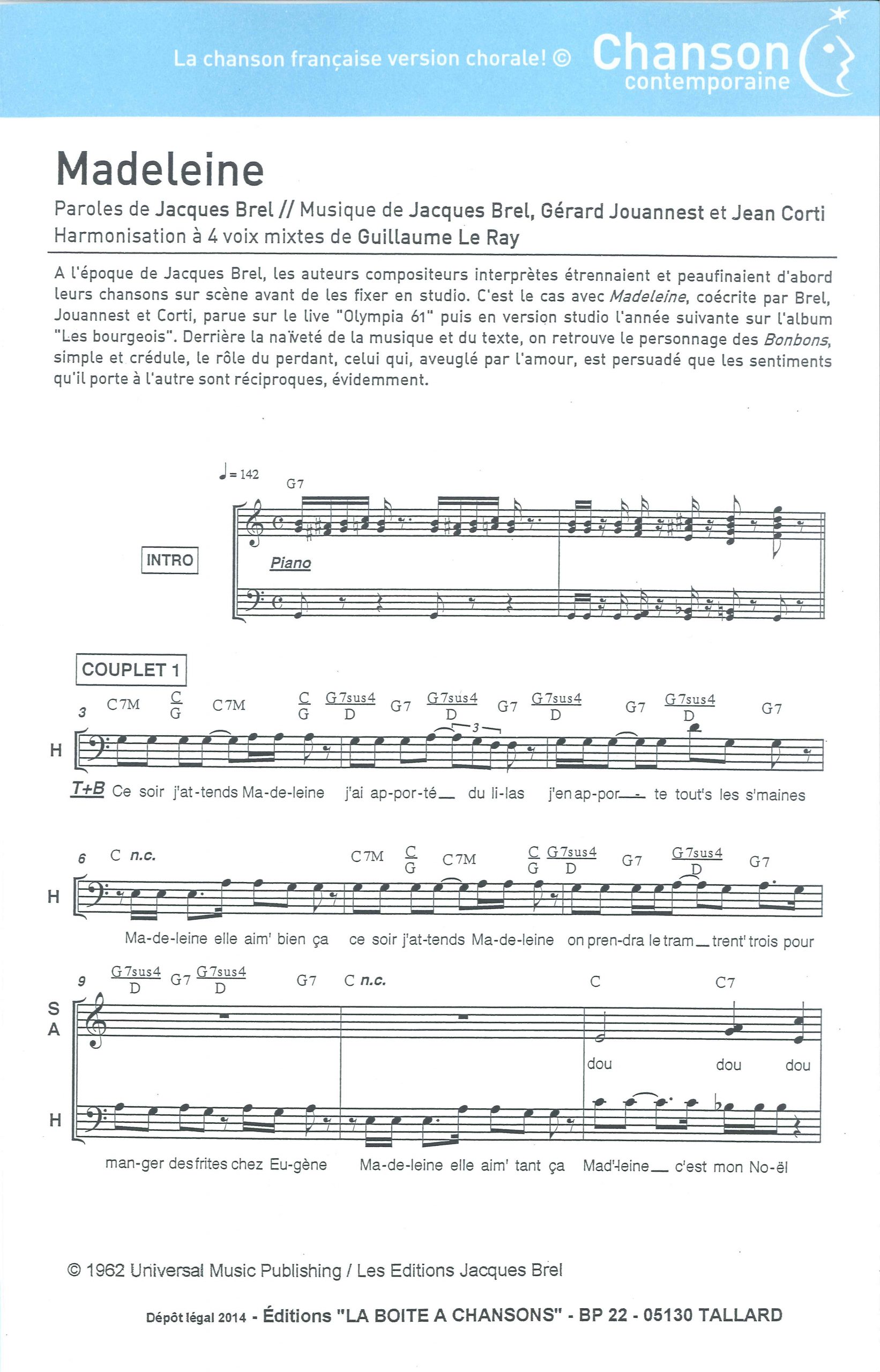 Paroles et musique : Jacques BREL Harmonisation : Guillaume LE RAY