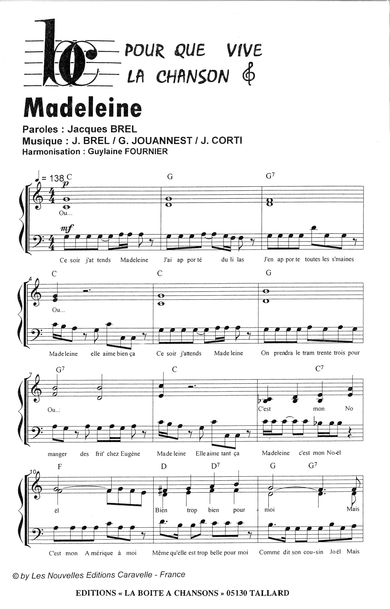 Paroles et musique de BREL Harmonisation : Guylaine FOURNIER