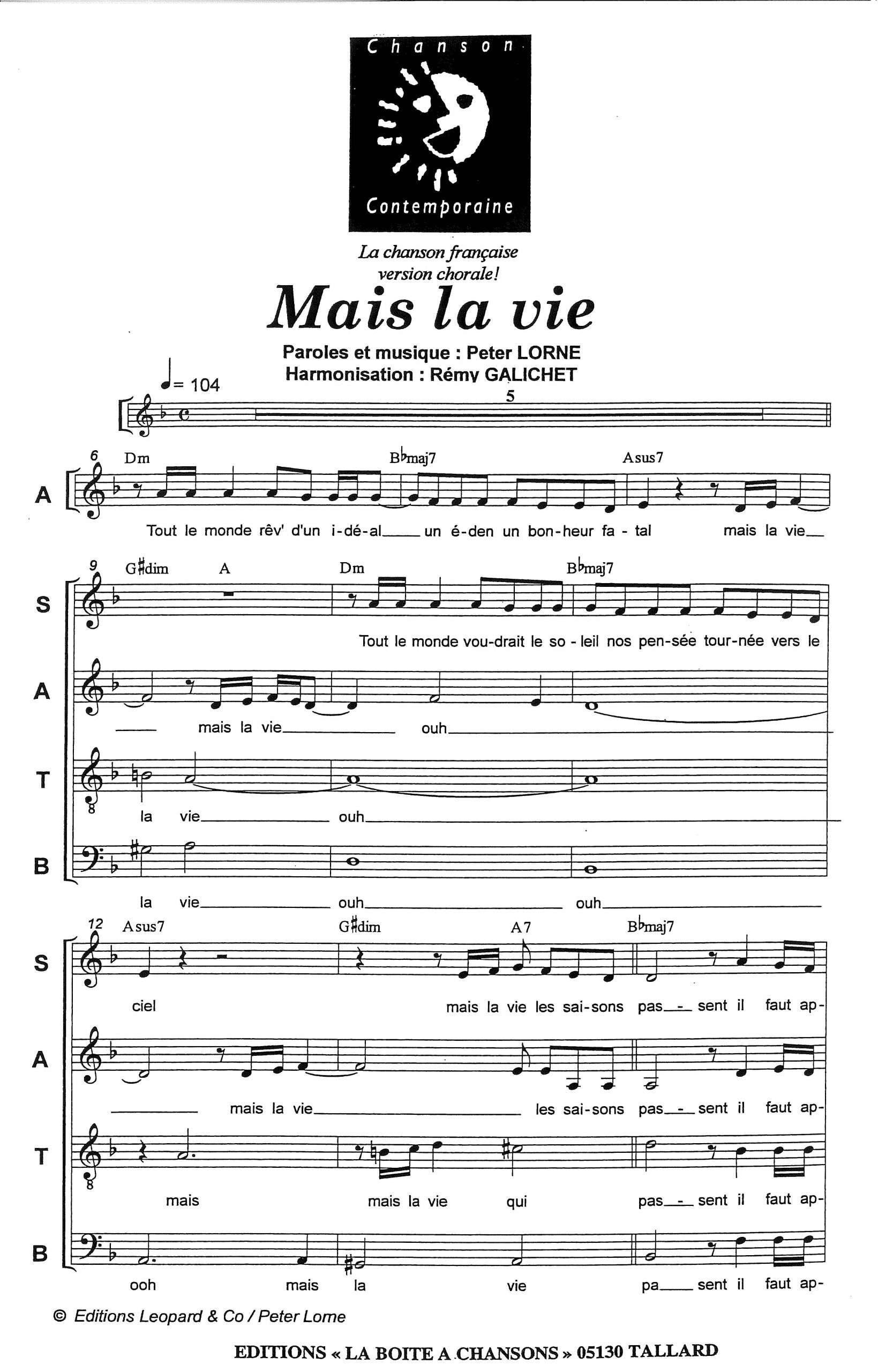 Paroles et musique de MAURANE/FABIAN Harmonisation : Remy GALICHET