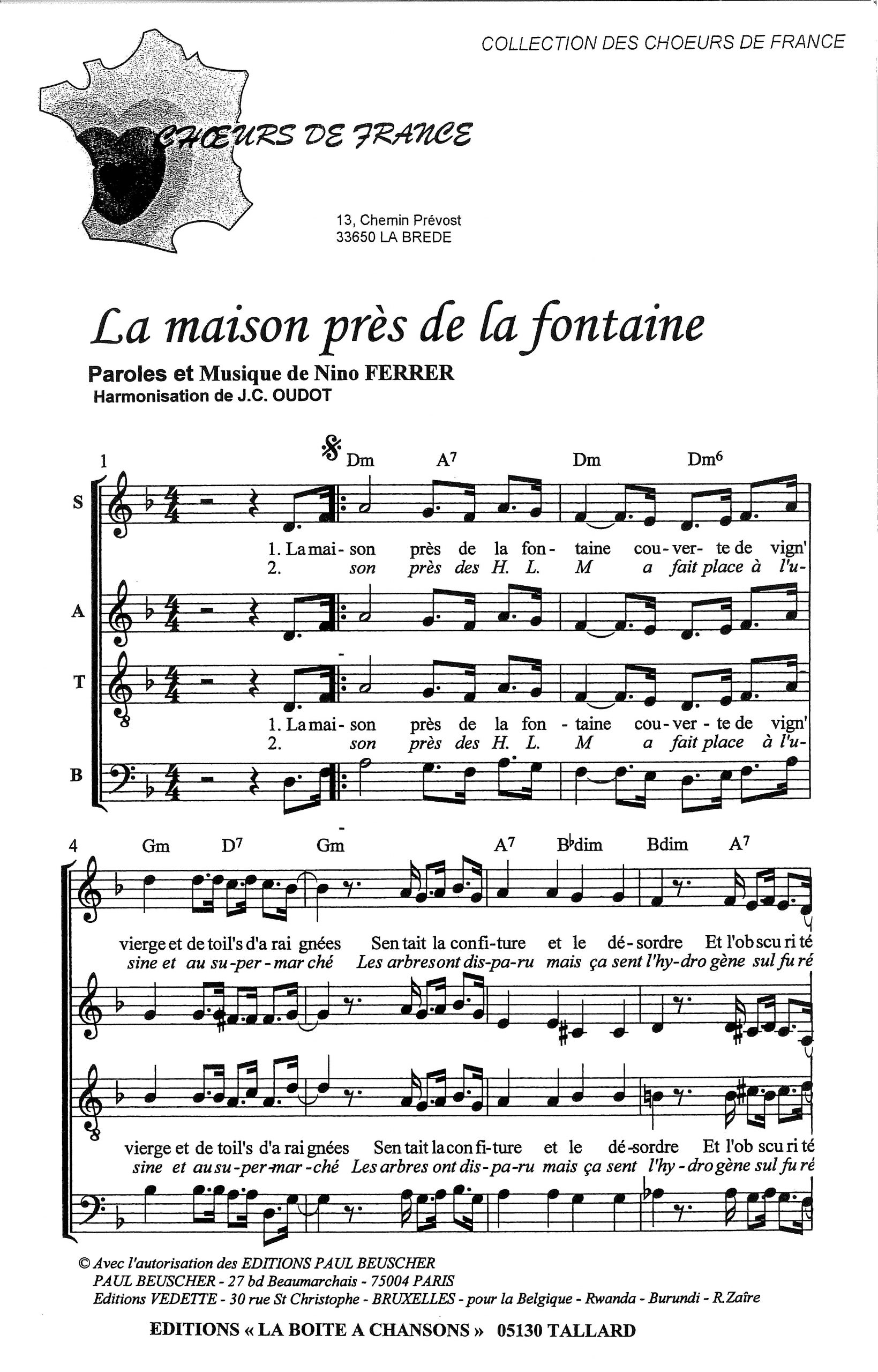 Paroles et musique de FERRER Harmonisation : Jean Claude OUDOT