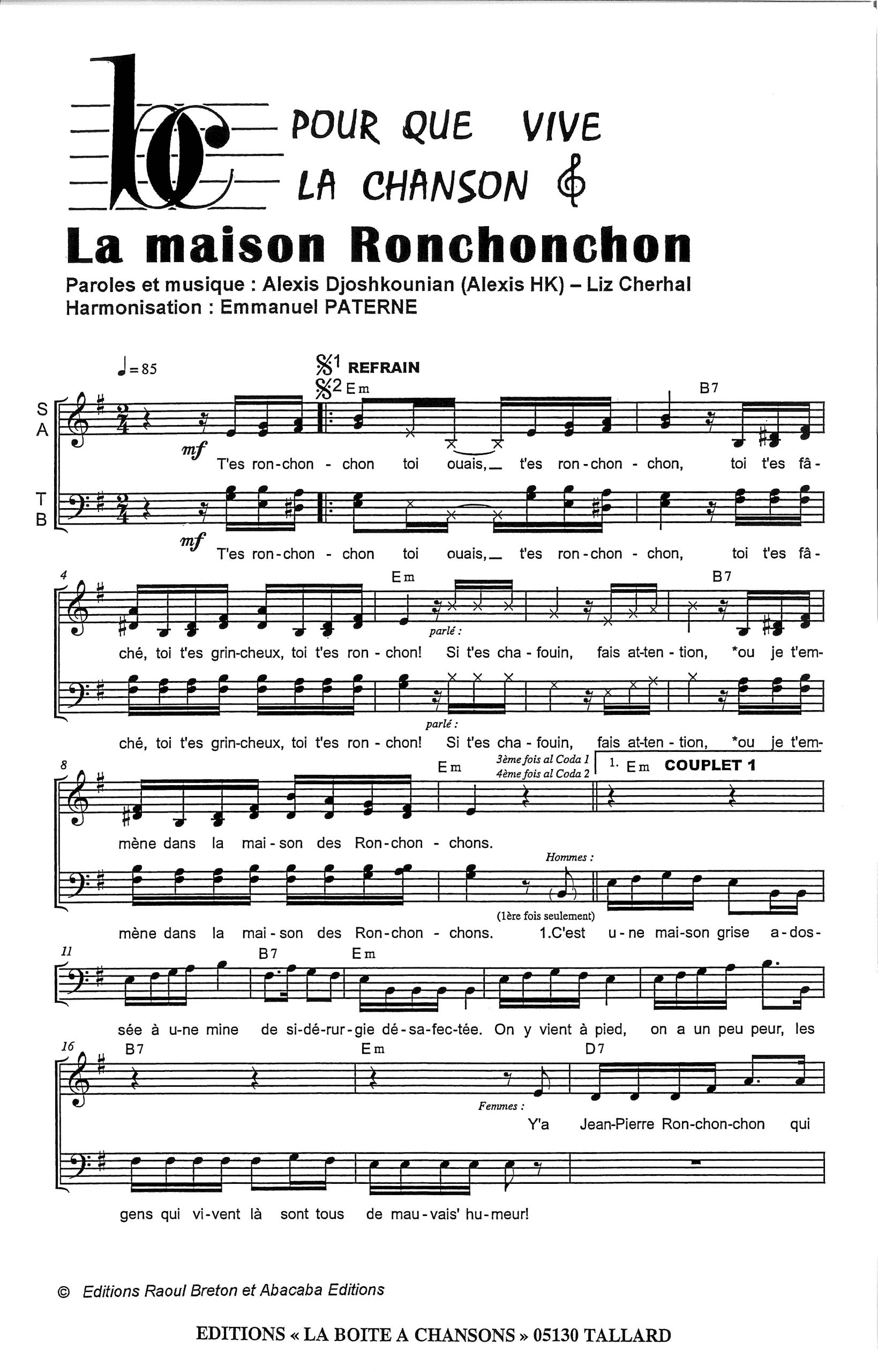Paroles et musique de ALEXIS HK/L. CHERHAL Harmonisation : Emmanuel PATERNE