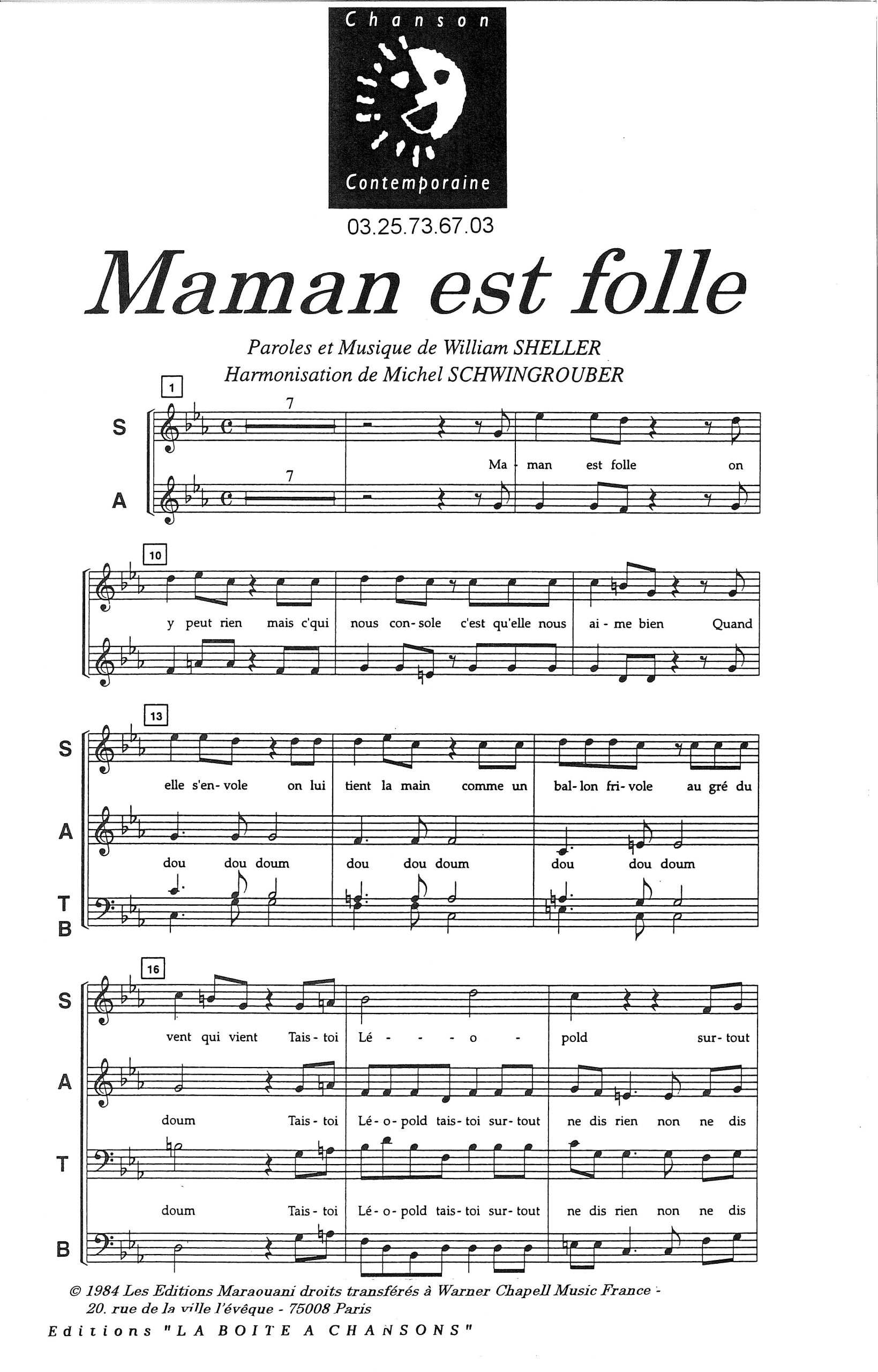 Paroles et musique de SHELLER Harmonisation : Michel SCHWINGROUBER