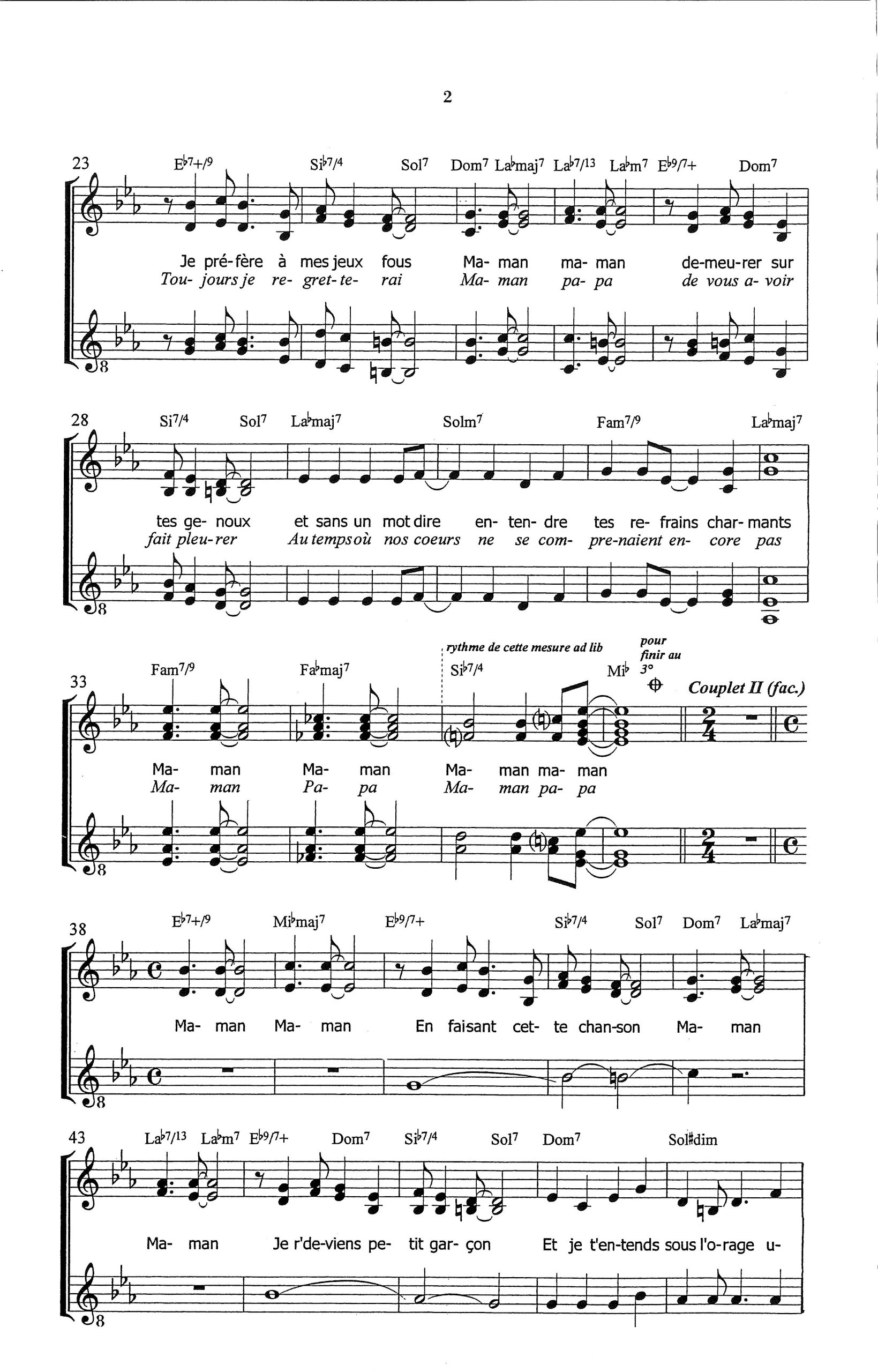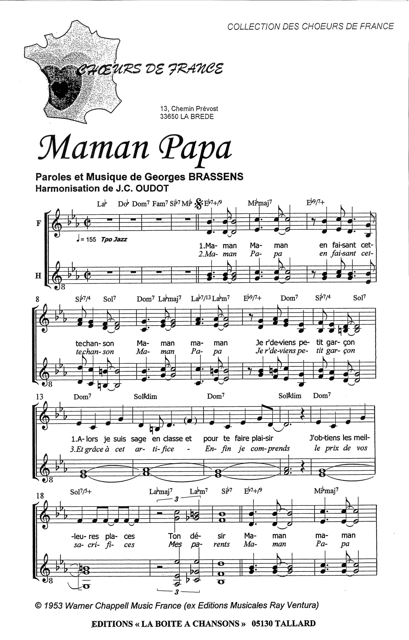 Paroles et musique de BRASSENS Harmonisation : Jean Claude OUDOT