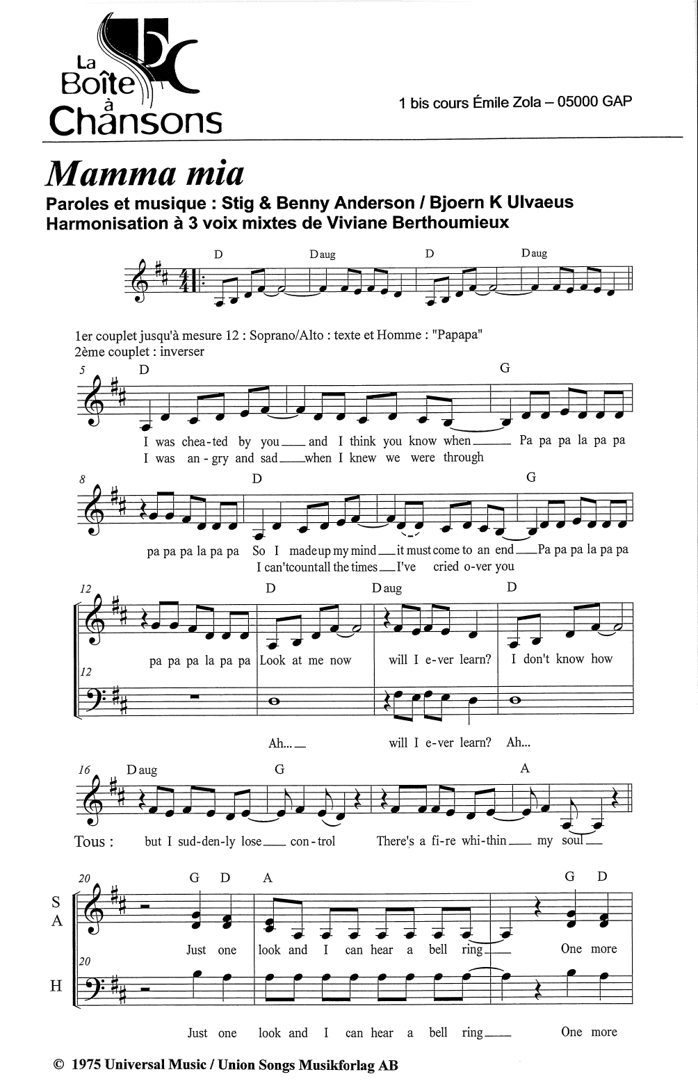 Paroles et musique : Stig / B. Anderson / B. K Ulvaeus
