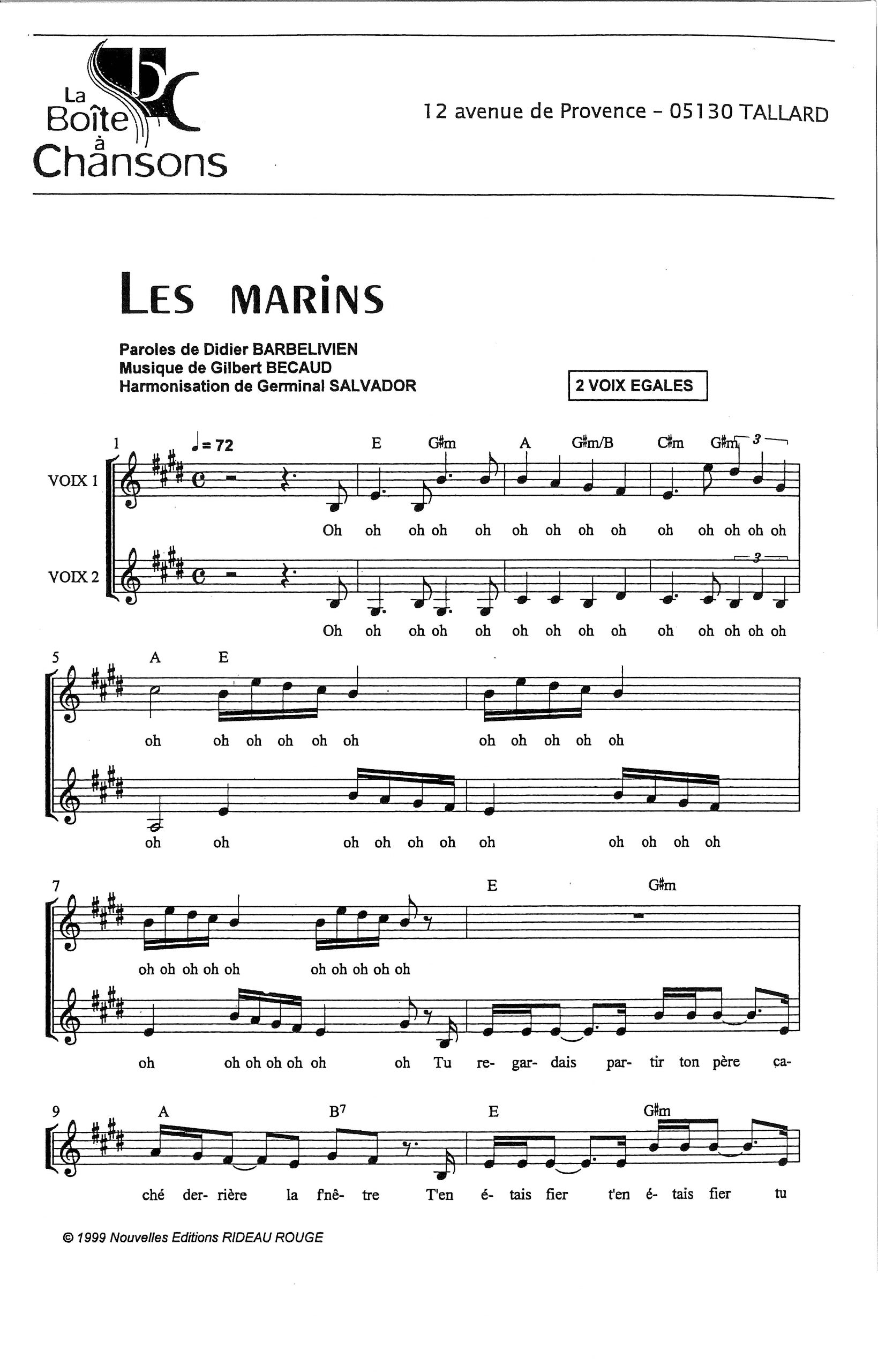 Paroles et musique de BECAUD/BARBELIVIEN Harmonisation : Carole BELLAVANCE