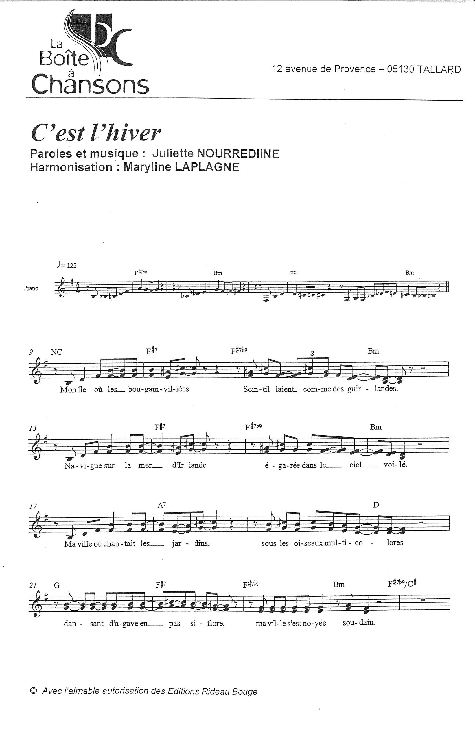 Paroles et musique : R. Seff / Harmonisation : Maryline LAPLAGNE