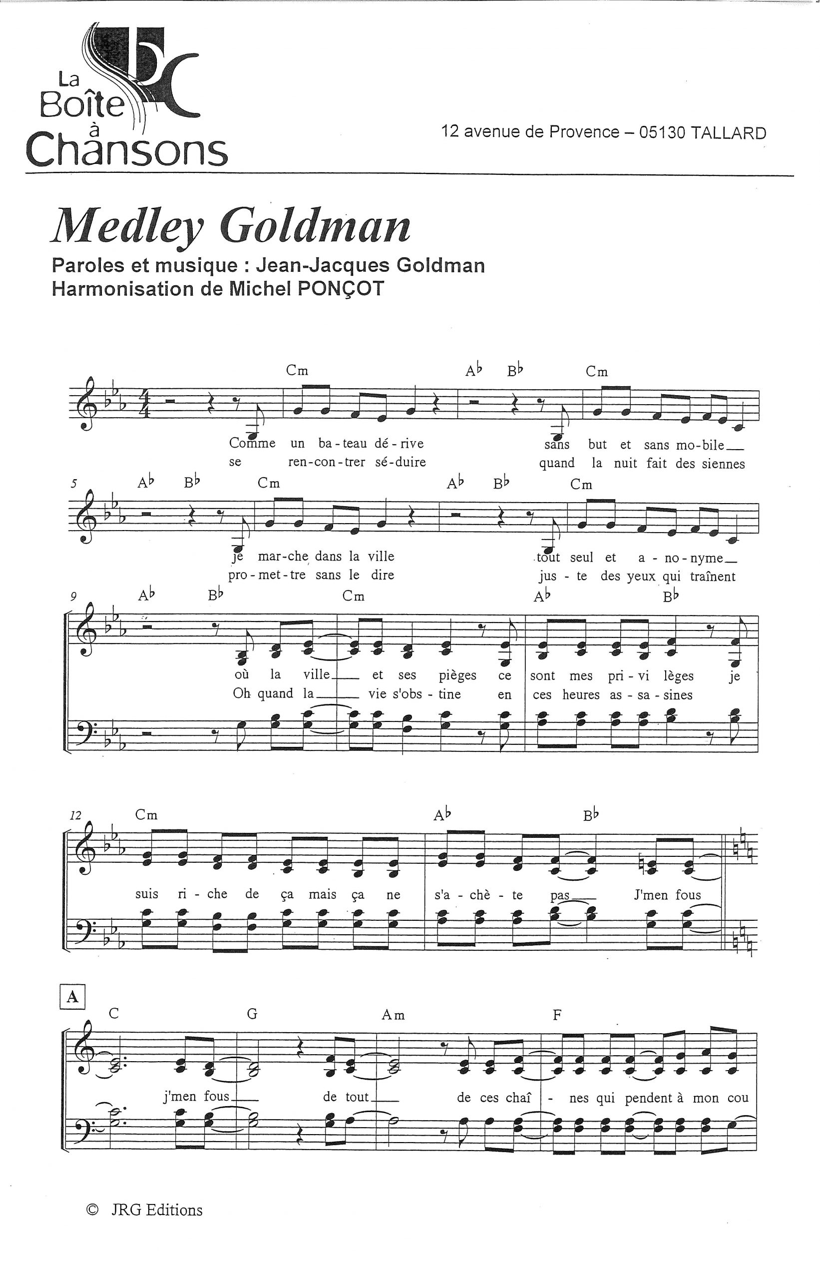 Paroles et musique : Jean Jacques Goldman / Harmonisation : Michel Ponçot