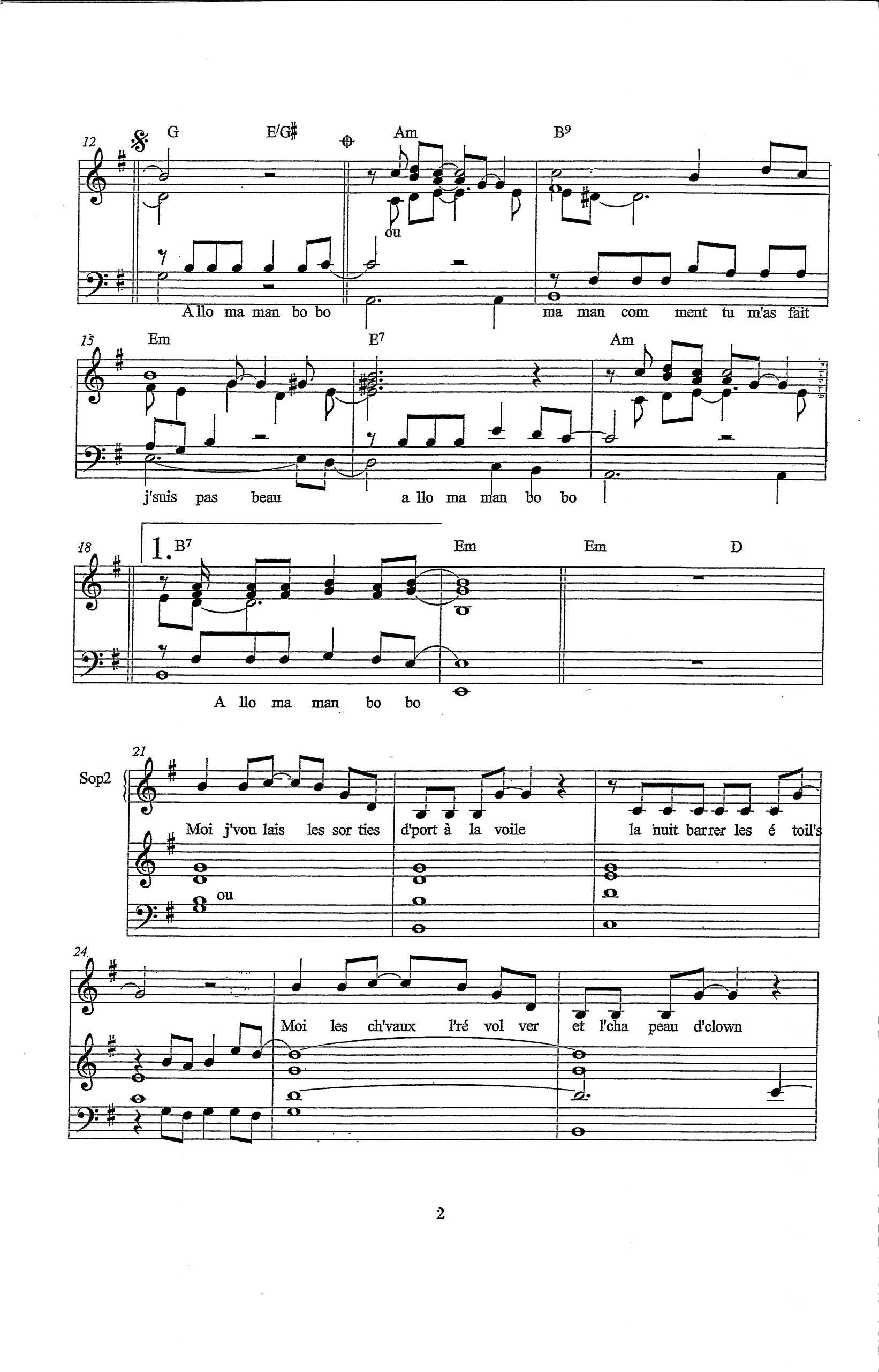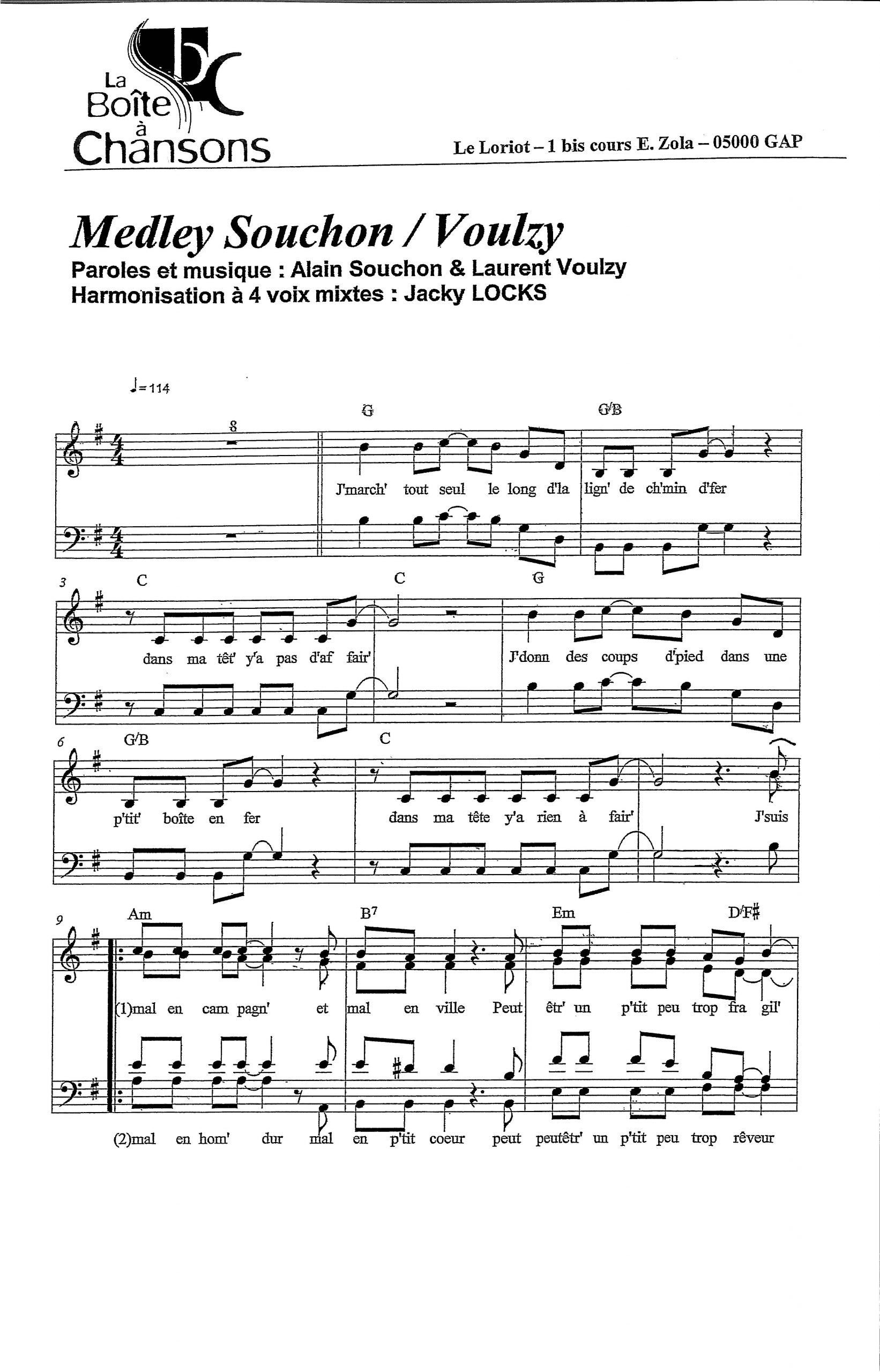 Paroles et musique : A. Souchon / L. Voulzy Harmonisation : Jacky Locks