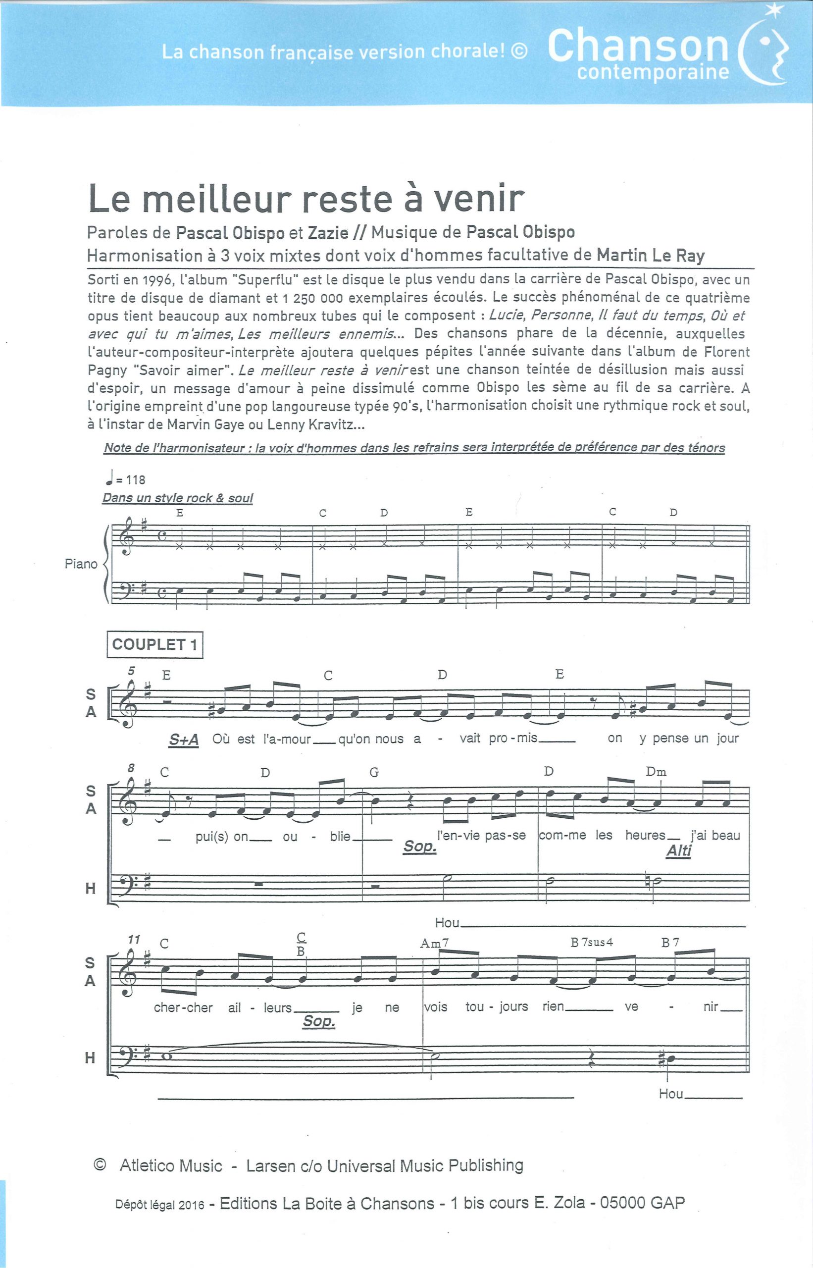 Paroles et musique : P. Obispo / Zazie Harmonisation : Martin LE RAY