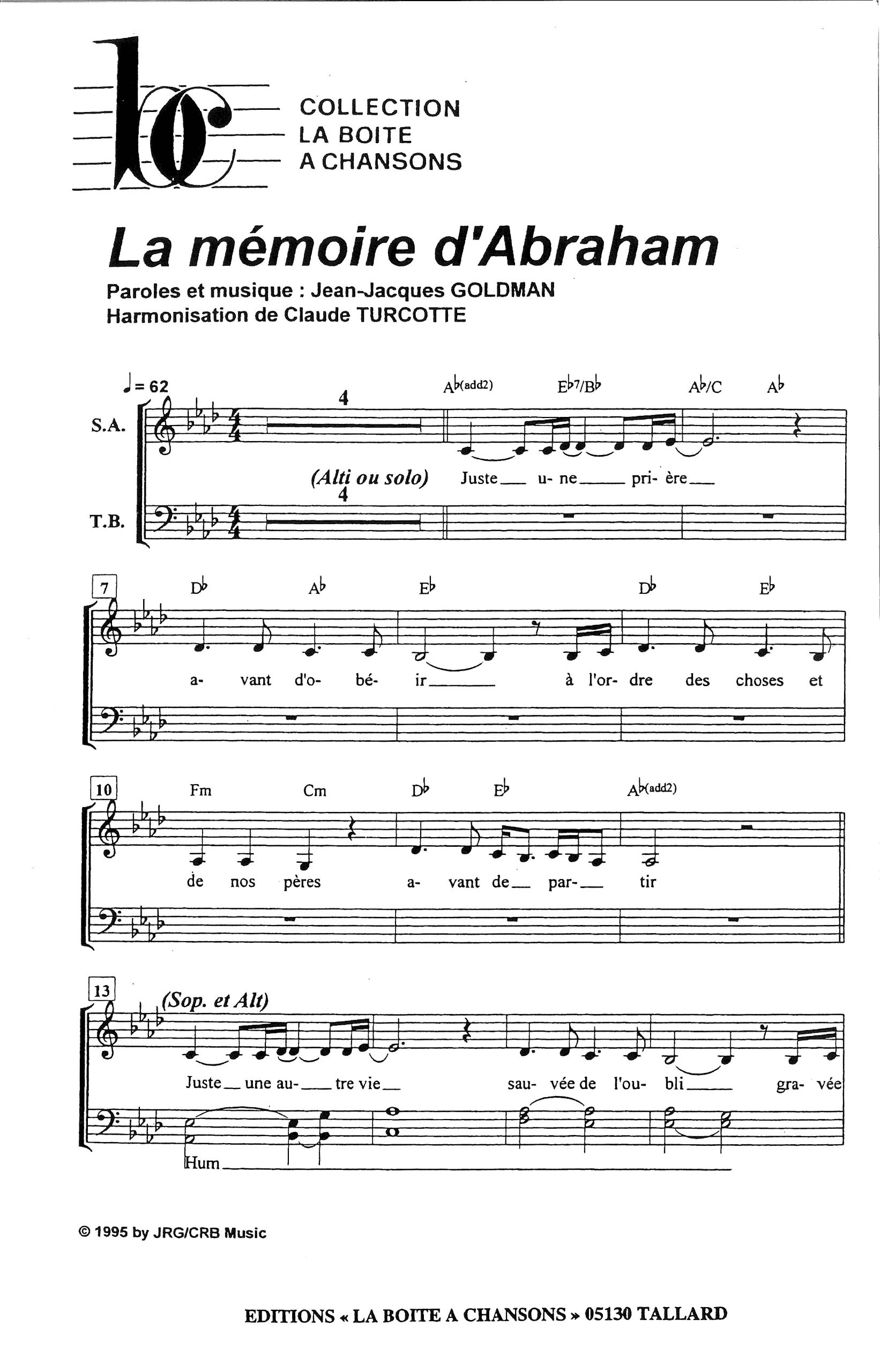 Paroles et musique de GOLDMAN Harmonisation : Claude TURCOTTE