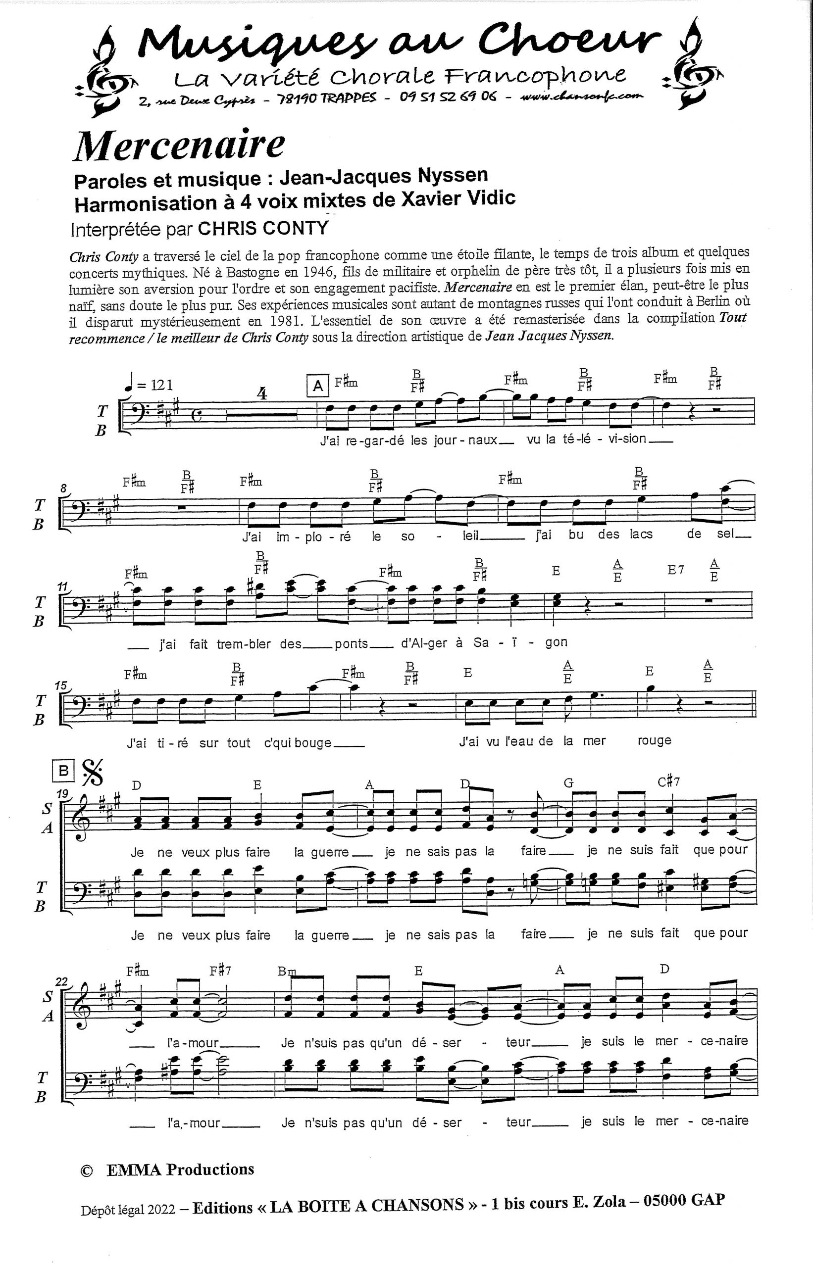 Paroles et musique : J.J. Nyssen Harmonisation : Xavier Vidic